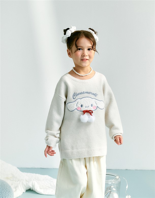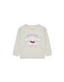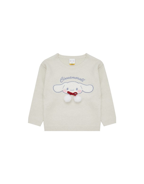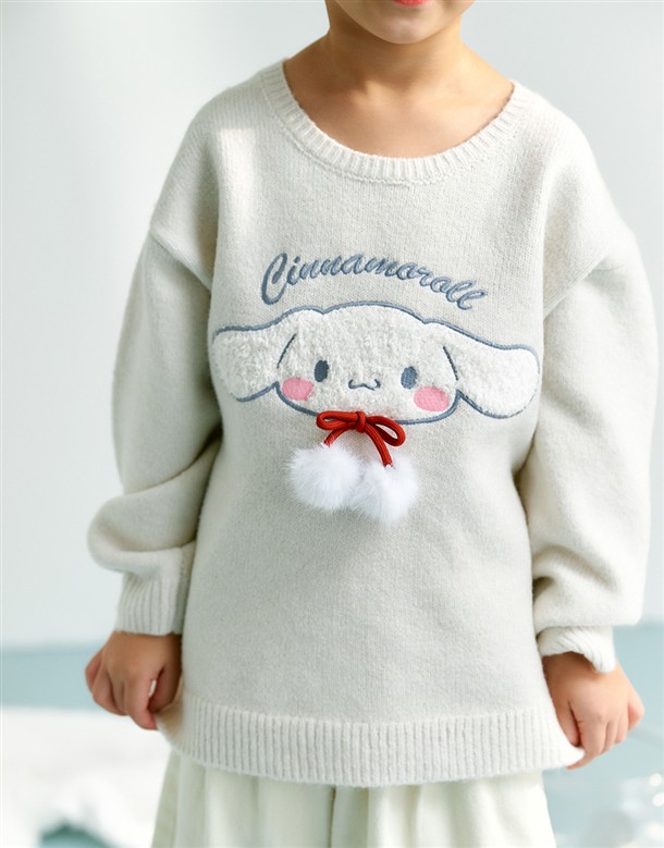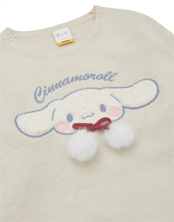 大耳狗大臉QQ毛貼布,立體紅色蝴蝶結+毛球設計,質感牛絨落肩毛衣