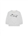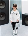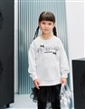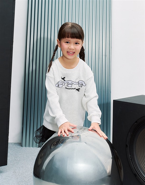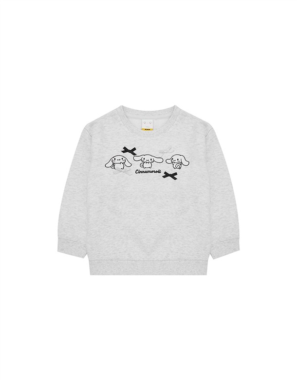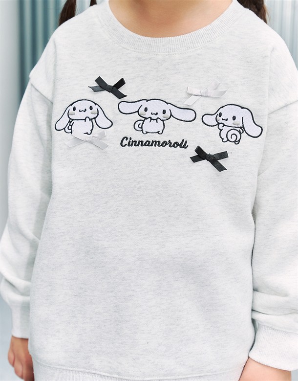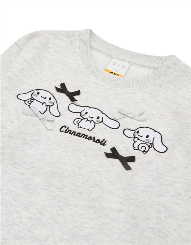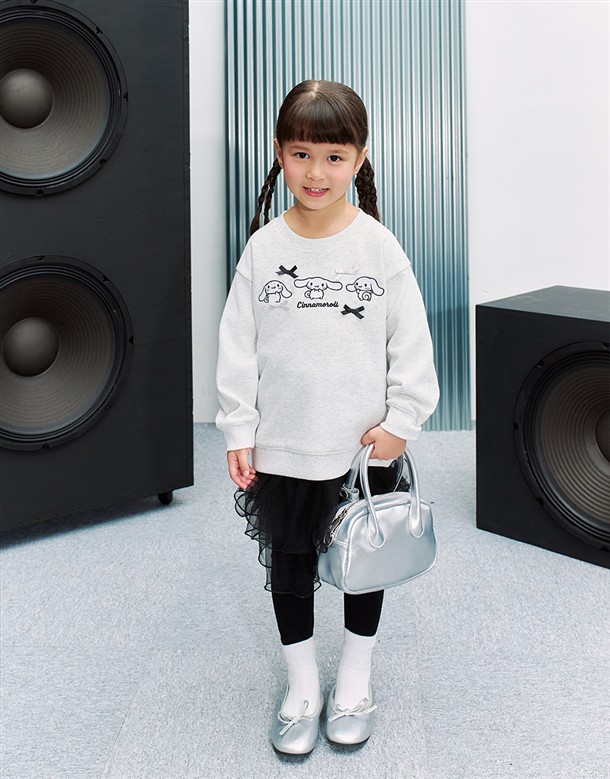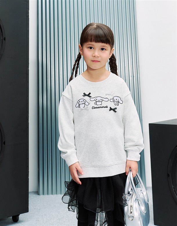 三麗鷗黑灰銀系列,大耳狗質感電繡與蝴蝶結裝飾設計,質感薄刷毛落肩上衣
