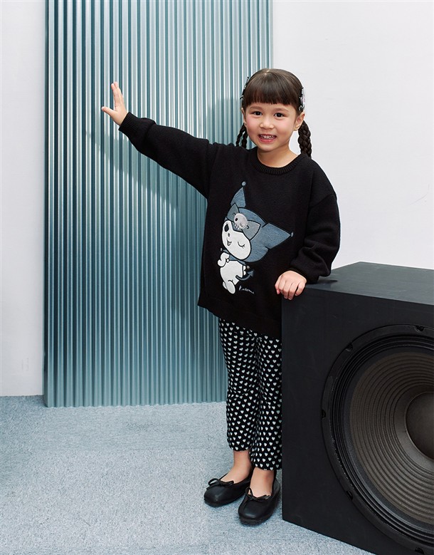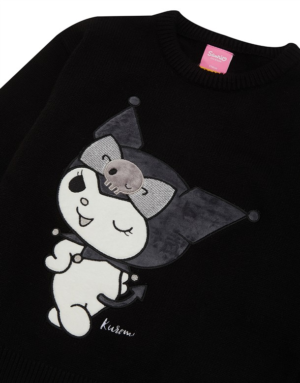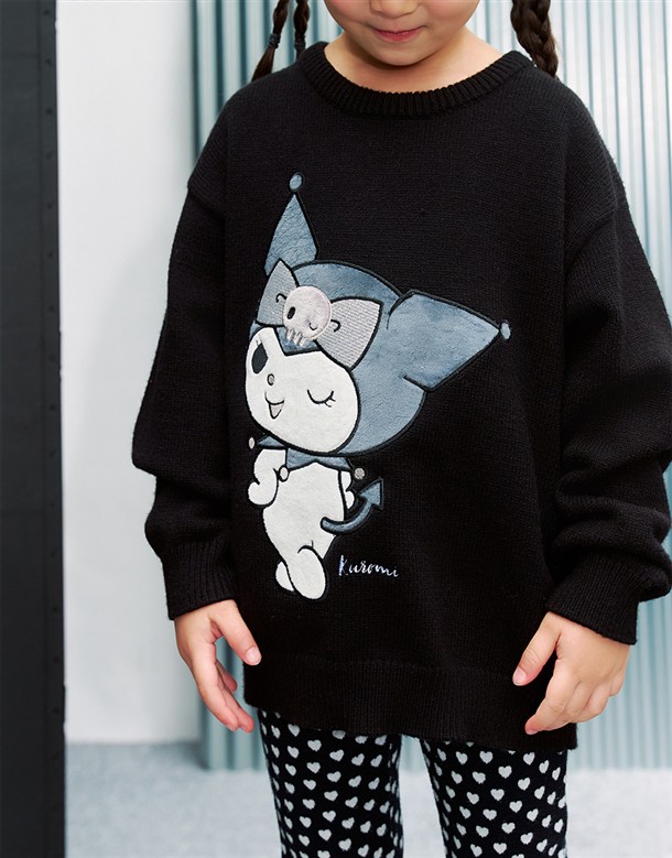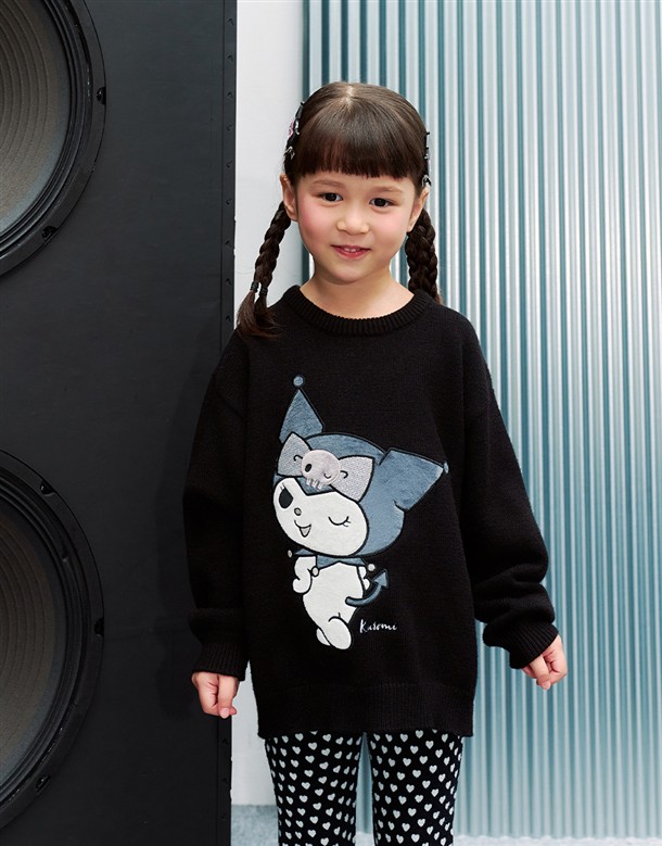 三麗鷗黑灰銀系列,酷洛米精緻貼布電繡工藝,保暖寬鬆落肩毛衣