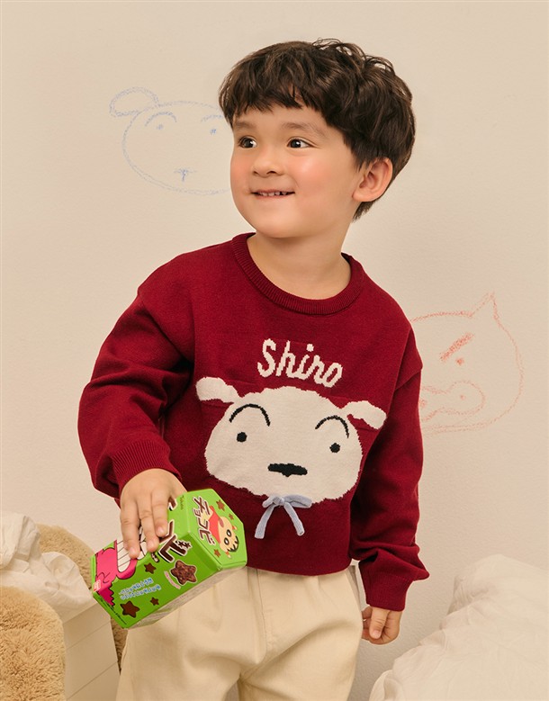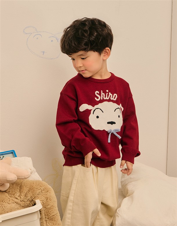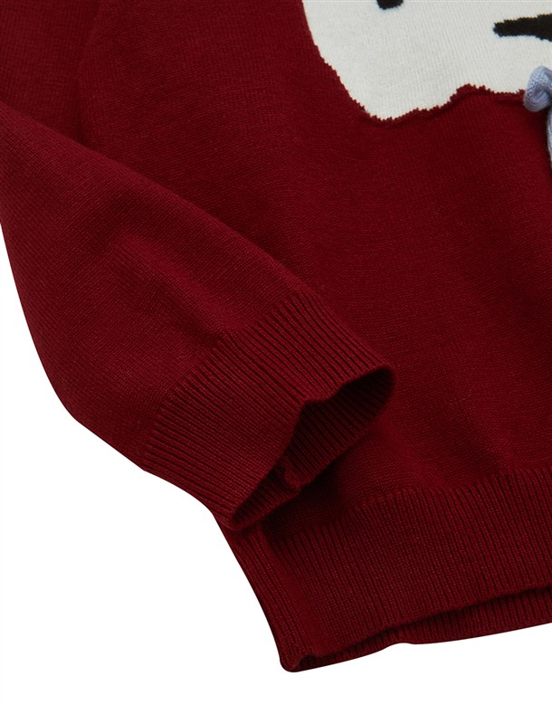 小白大圖提花,立體蝴蝶結設計,舒適毛衣