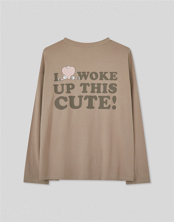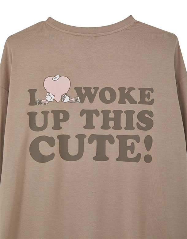 -在右前胸有SNOOPY柔軟印花圖案,以及背面「我就這樣醒了」英文標語,療瘉感滿分。