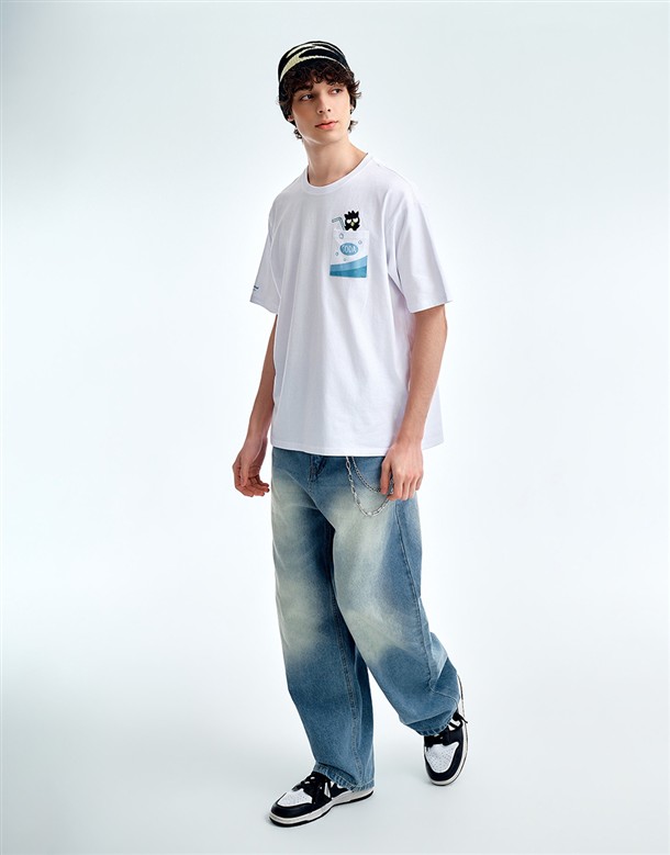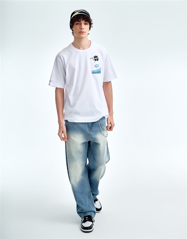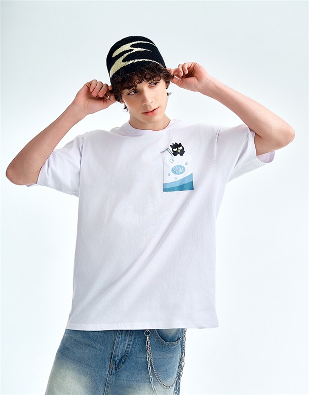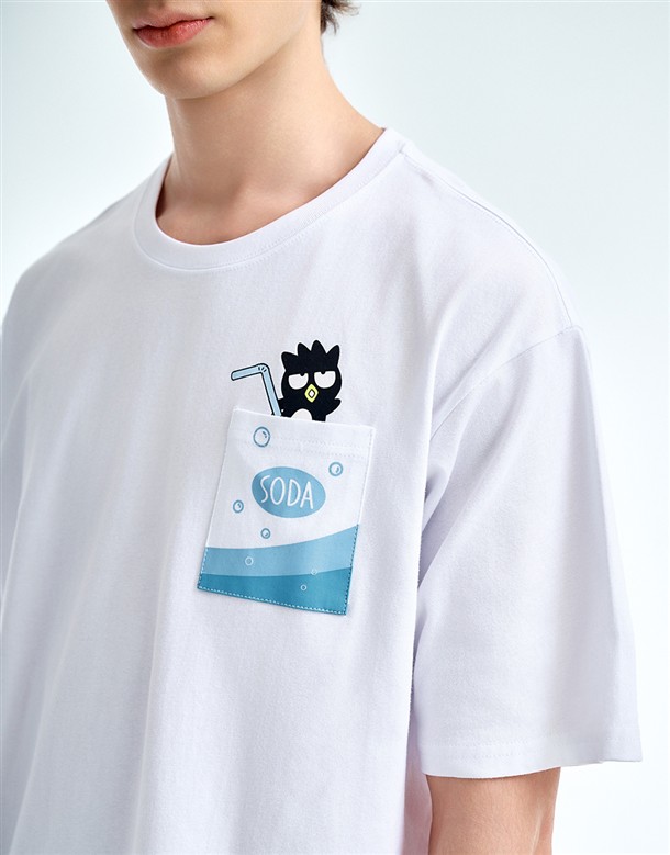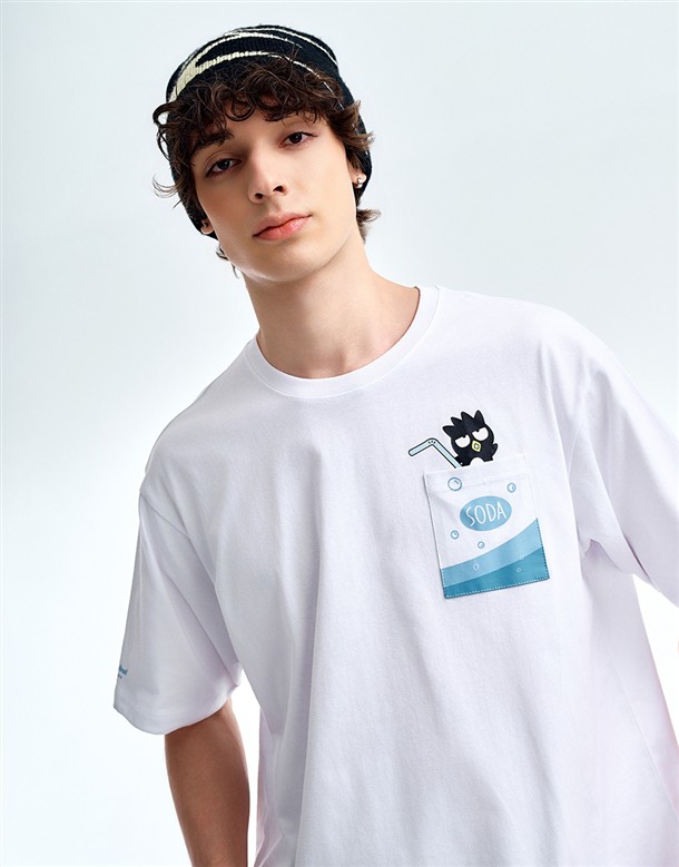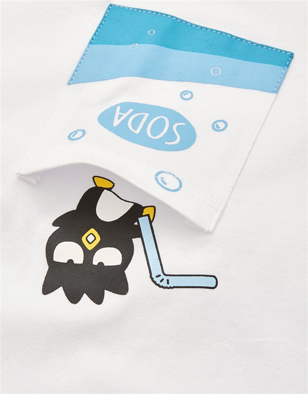 男團酷企鵝汽水口袋設計,舒適純棉落肩短TEE