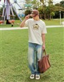 布丁狗趣味麵包魔鬼氈設計,落肩棉質上衣