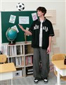 小新小白訂織羅紋,袖口出芽設計,寬鬆落肩棒球衫