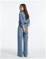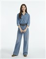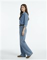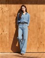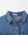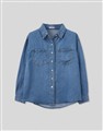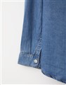 柔軟垂墜天絲牛仔面料,版型寬鬆,門襟袖口壓釦設計,下擺修身微圓弧,正面造型雙口袋