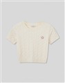 親膚柔軟絲光棉紗線,拐麻花織紋設計,版型合身,小花電繡設計