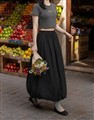 棉質挺版平織面料,腰頭整圈鬆緊帶,有舒適內裡,澎澎倒拋版型設計,兩側隱形口袋