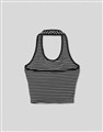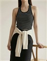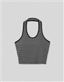 舒適混棉彈力坑條面料,繞脖設計削肩顯瘦,內有附舒適罩杯不可拆