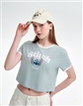 質感印花設計,親膚涼感羅紋撞色合身短版上衣