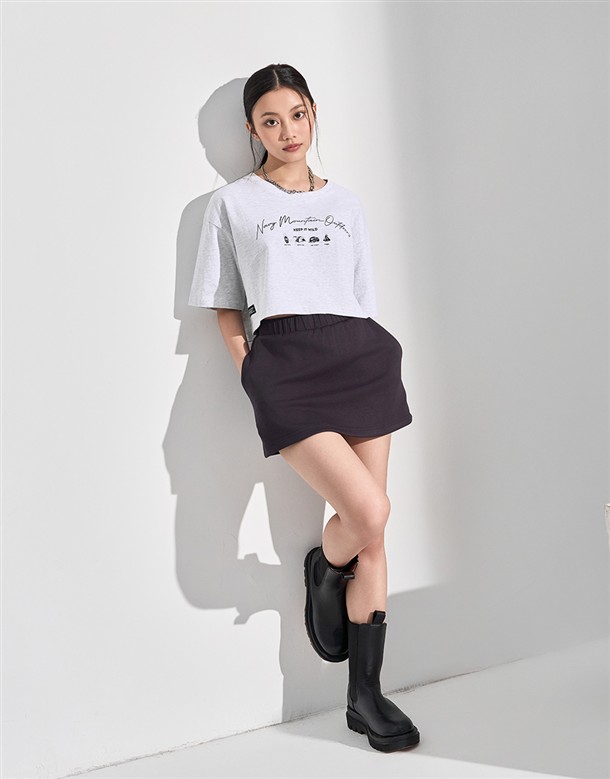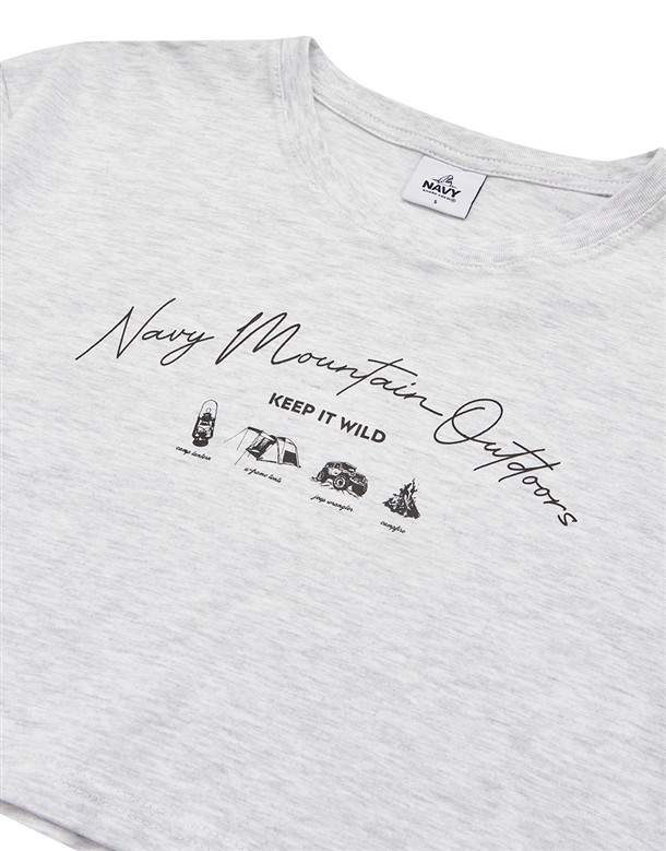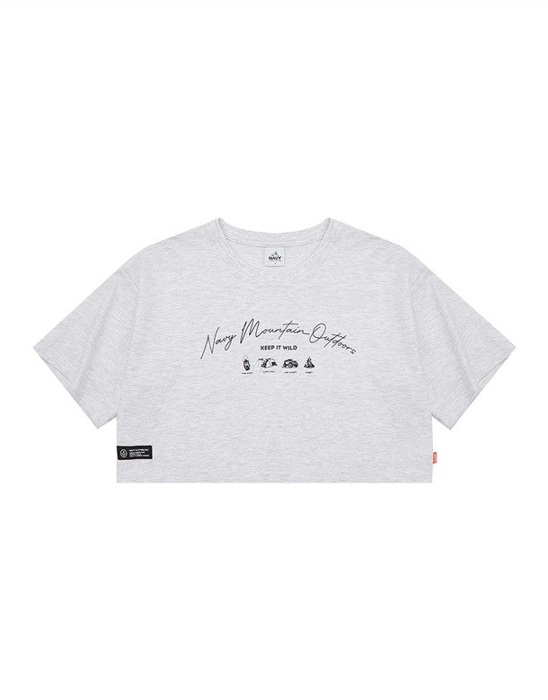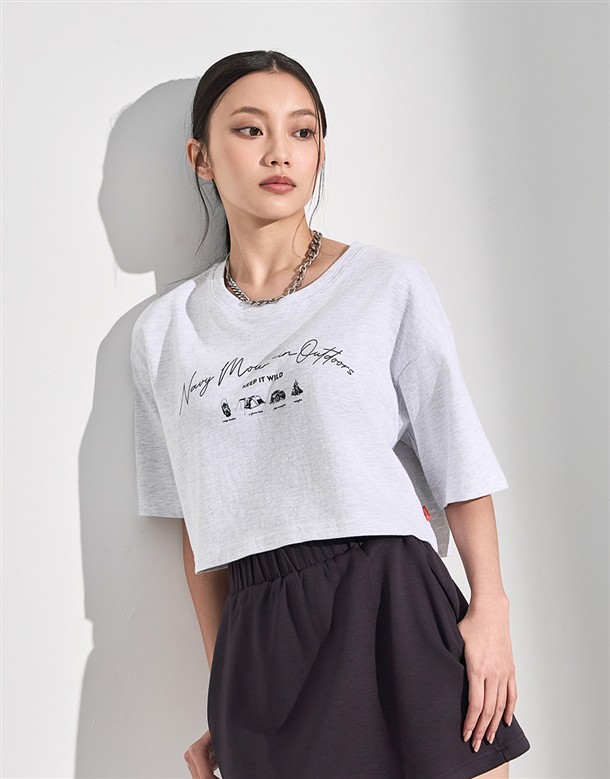 山岳工藝露營工具圖美國棉短TEE,女款落肩寬鬆短版穿搭款