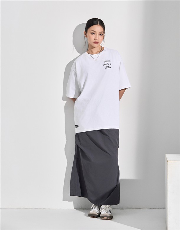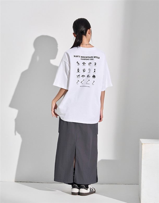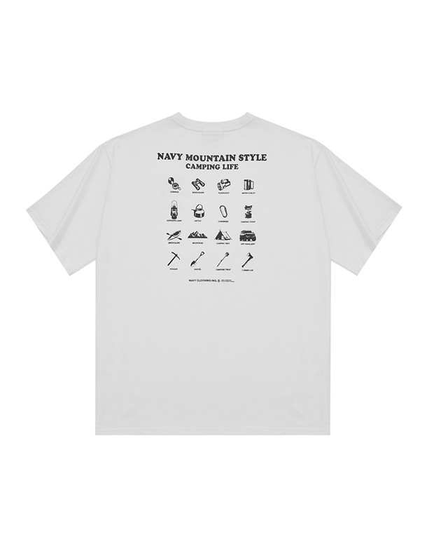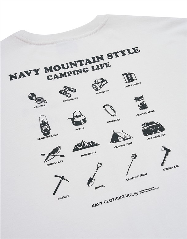 NAVY山系露營工具圖鑑背圖,女款落肩寬美國棉短TEE