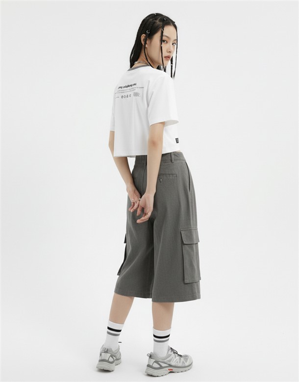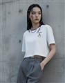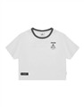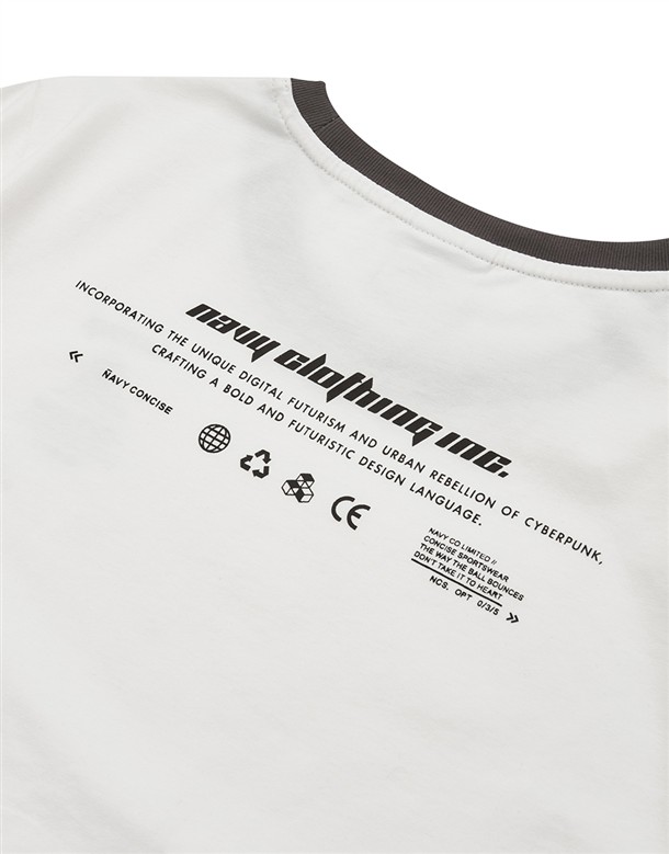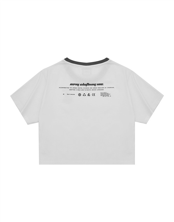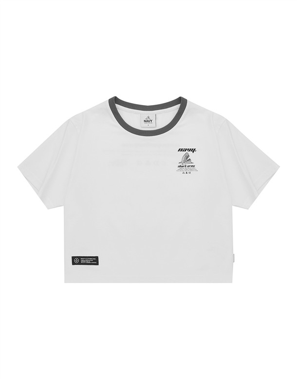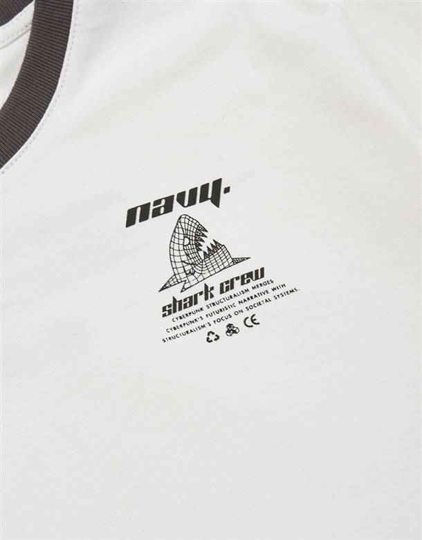 立體線條鯊魚圖酸性設計風格,女款彈性合身面料撞領上衣