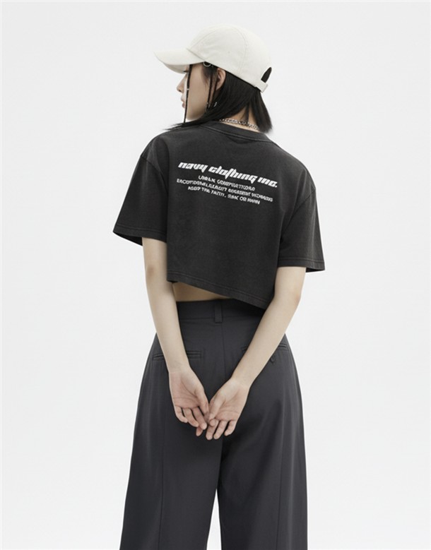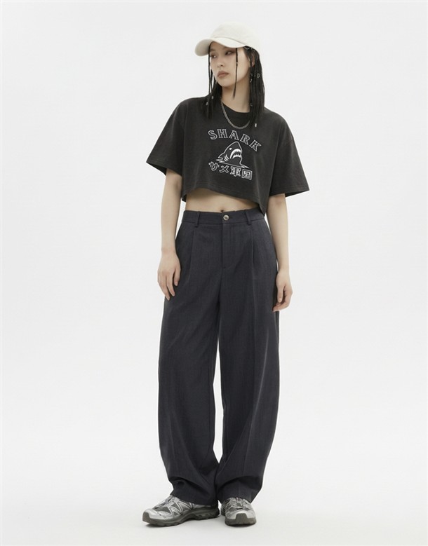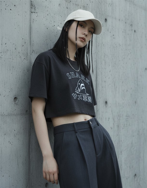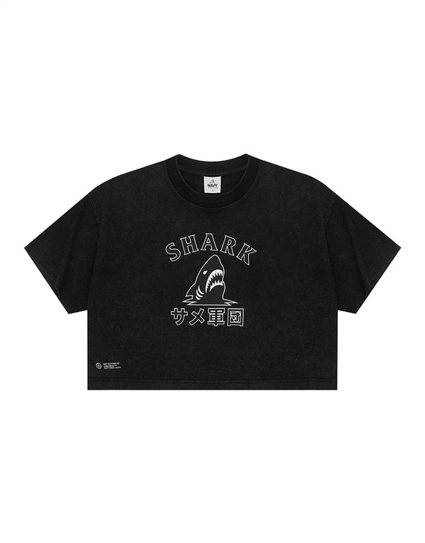 鯊魚剪影圖暗黑設計風格洗水,女版落肩短版