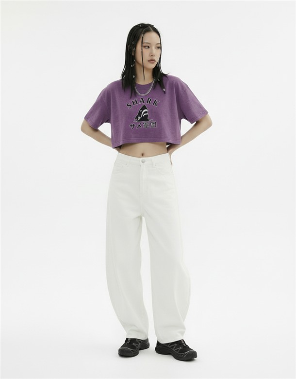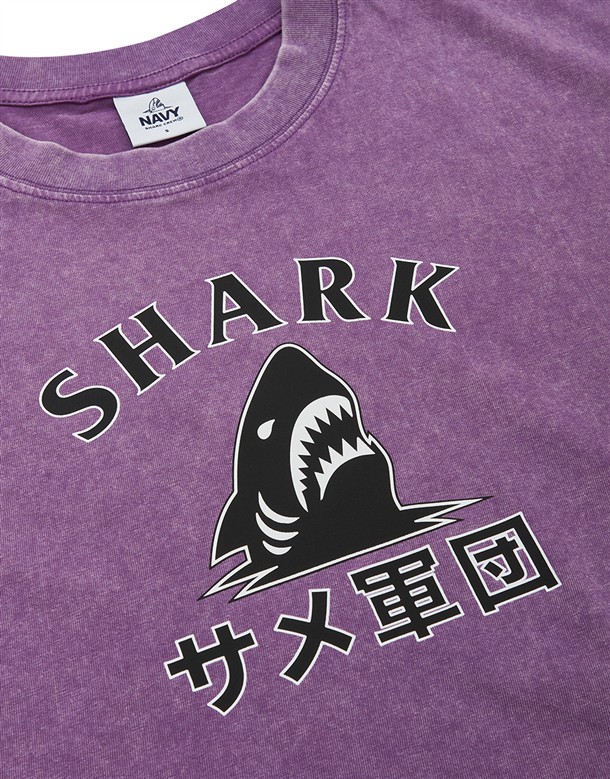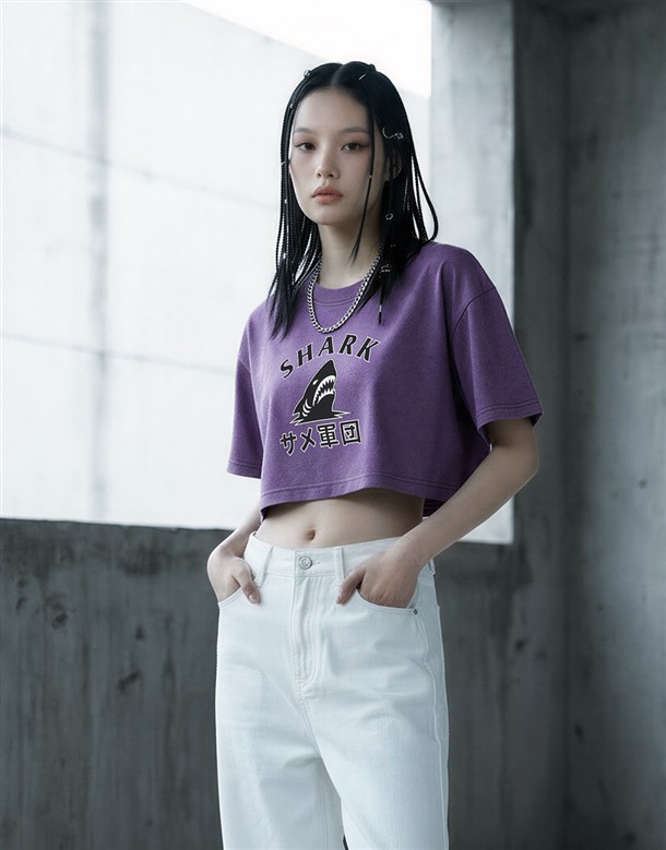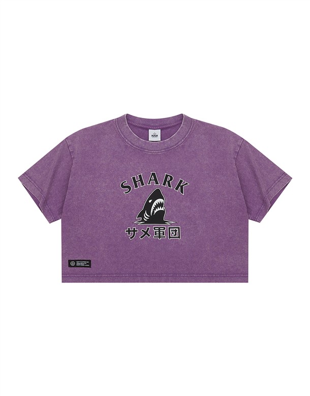 鯊魚剪影圖暗黑設計風格洗水,女版落肩短版