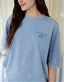 大耳狗電繡大圖設計,復古水洗棉質落肩寬鬆版短TEE