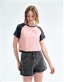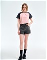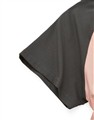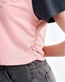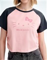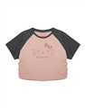 拉克蘭撞色側抽皺合身上衣,胸前凱蒂貓五官植絨印刷,舒適親膚彈性面料