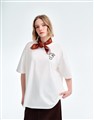 胸前凱蒂貓仿銀印刷,附方巾多用途搭配,舒適涼感面料落肩寬鬆版