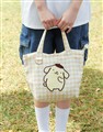 布丁狗質感銀狐絨貼布繡,提把D環可掛吊飾設計,日常實用格紋手提袋