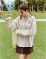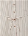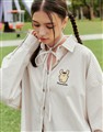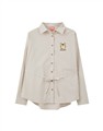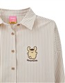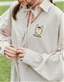 布丁狗質感電繡設計,親膚條紋棉質面料,澎袖與附贈綁帶造型,下襬圓弧及衣長前短後長設計,日常穿搭綁帶襯衫