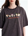 三麗鷗曬黑大集合噴墨印刷,落肩寬版上衣,復古水洗棉面料,男女皆可穿中性款