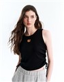 凱蒂貓曬黑電繡設計,訂製機能涼感彈性坑條面料,兩側抽繩綁帶背心