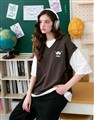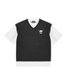 小白電繡設計,假兩件撞色背心造型,舒適微彈面料,落肩寬鬆TEE