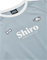 小白條紋足球服風格上衣,彈性面料拉克蘭袖合身短TEE