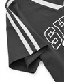 小白薄膠印刷,質感彈性面料,V領撞色壓條設計,運動休閒感穿搭上衣
