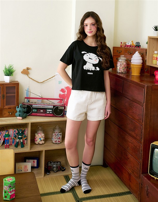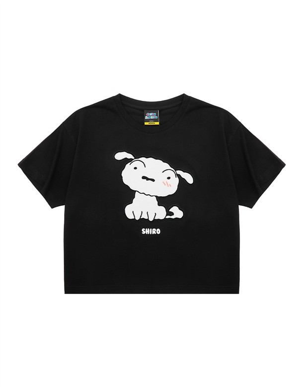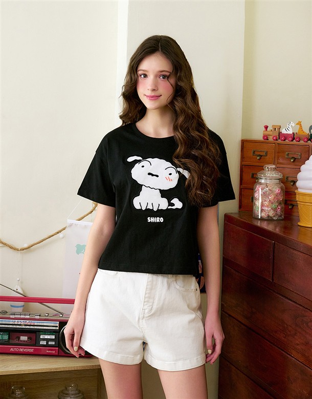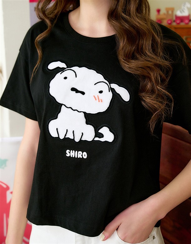 小白立體牙刷繡設計,舒適柔毛面材質落肩短TEE