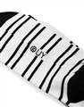 小白黑白撞色條紋與電繡設計,舒適中長襪