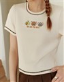 傑利鼠與小夥伴精緻電繡,撞色拷克線合身坑條上衣