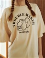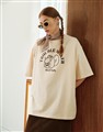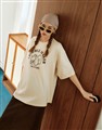 小惡魔泰菲線條大圖印刷,附條紋方巾多用途搭配,上衣落肩寬鬆版