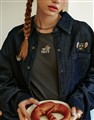 胸前泰菲小電繡設計,蓬袖造型,下襬圓弧設計,率性親膚柔軟牛仔面料襯衫