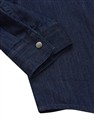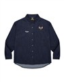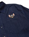 胸前泰菲小電繡設計,蓬袖造型,下襬圓弧設計,率性親膚柔軟牛仔面料襯衫