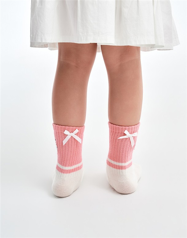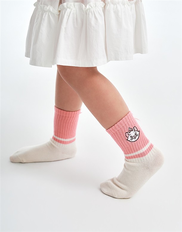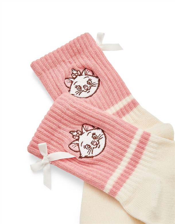 瑪麗貓精緻電繡,立體蝴蝶結裝飾,質感拼色中長襪
