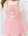 美樂蒂精緻貼布繡,裙身剪接多層次紗裙,拼接格紋布吊帶裙,可愛穿搭
