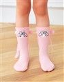美樂蒂大臉精緻電繡,背面搭配格紋緞帶蝴蝶結,MIT棉質襪子