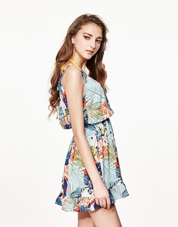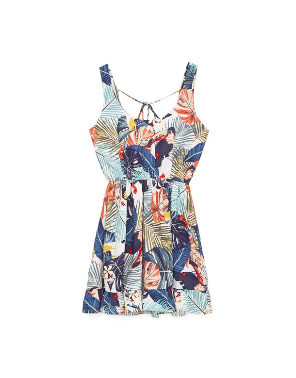 熱帶風情動物圖騰,後露背小性感點綴,度假必備小洋裝。