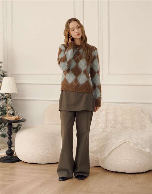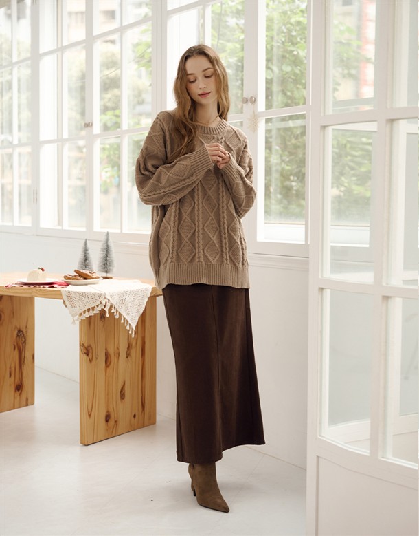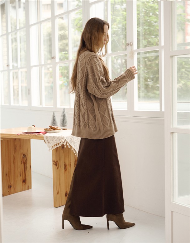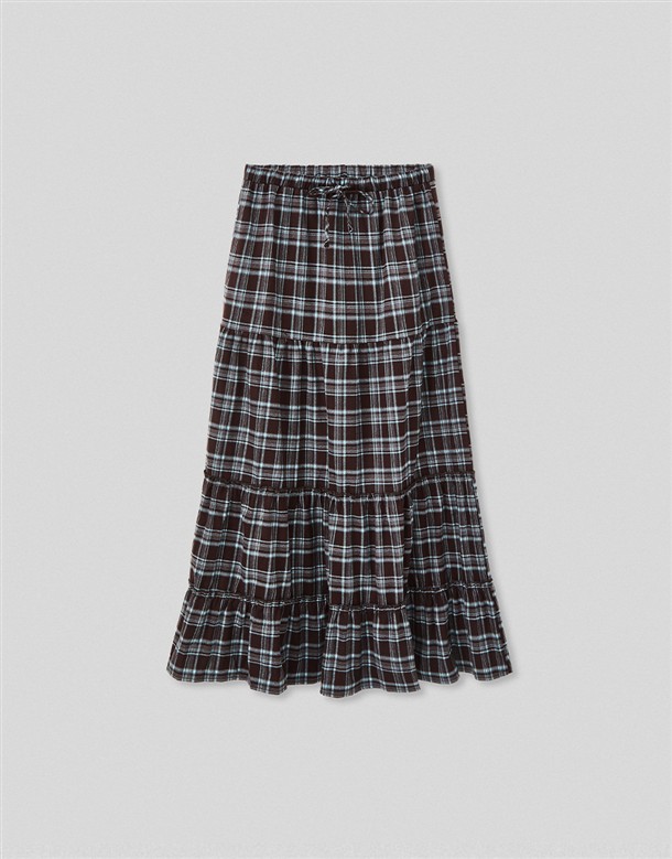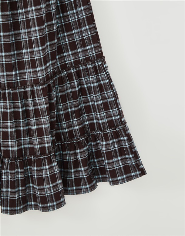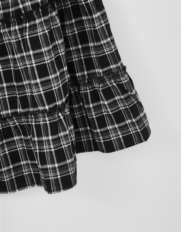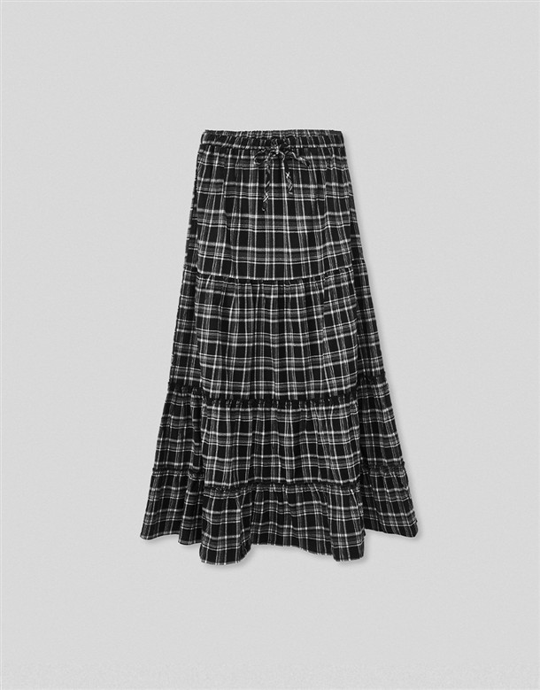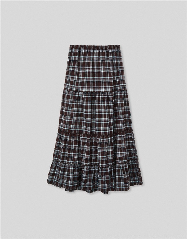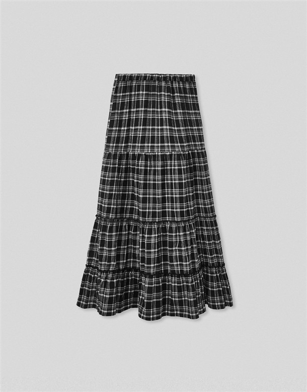 格紋磨毛蛋糕長裙