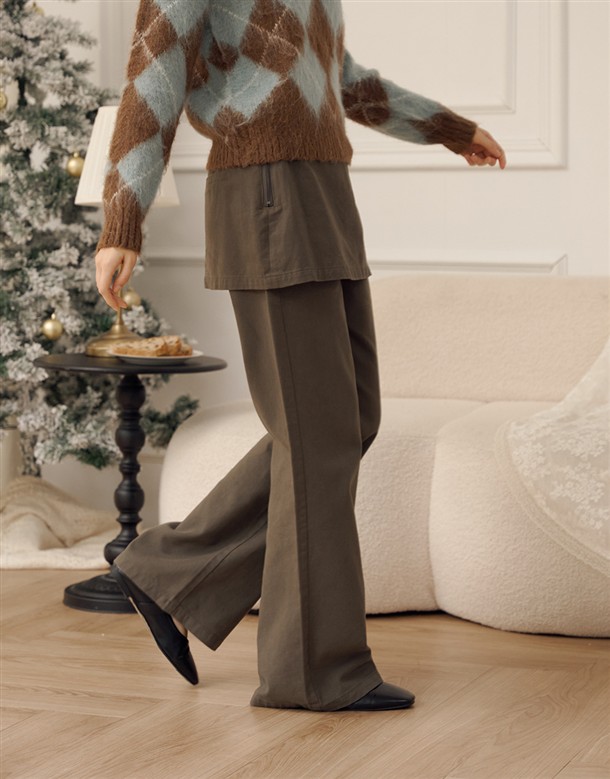 假兩件片裙設計斜紋長褲