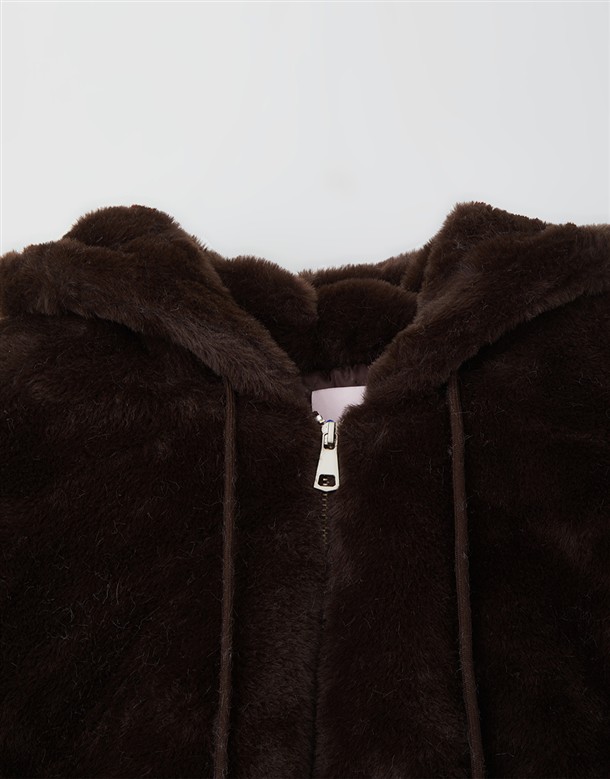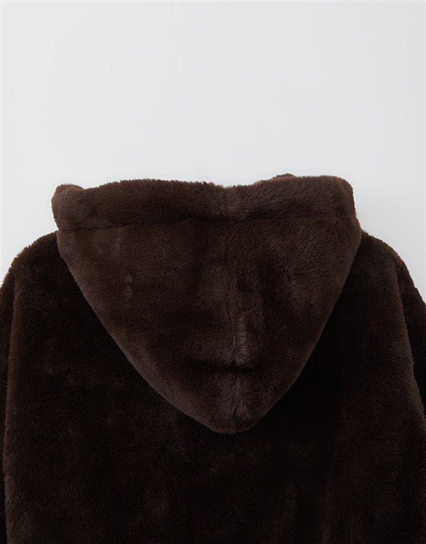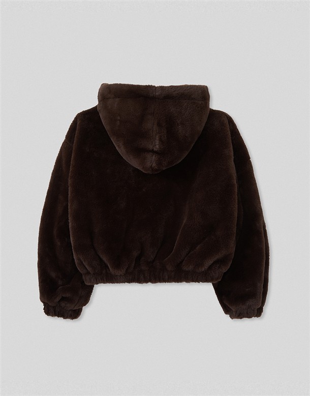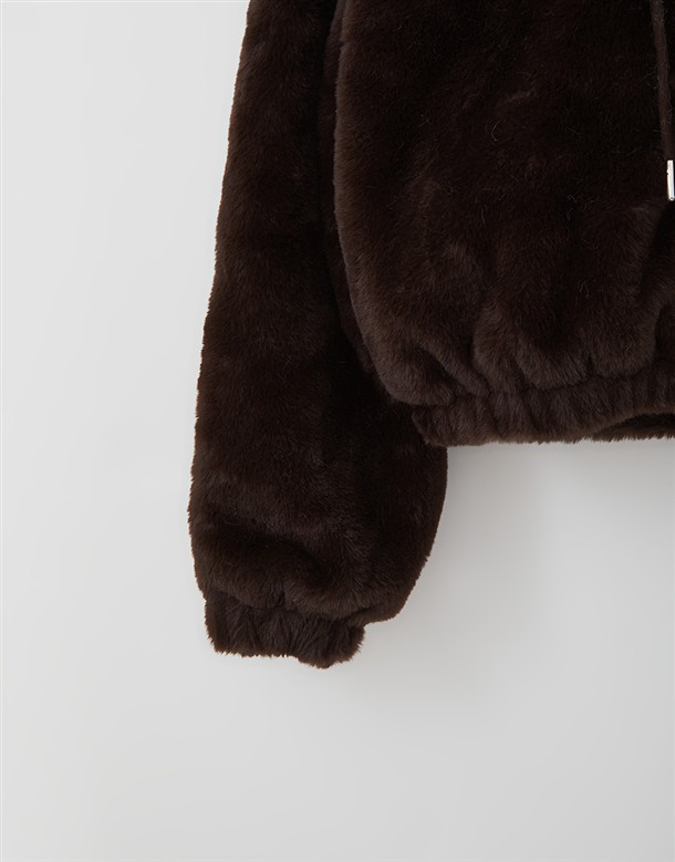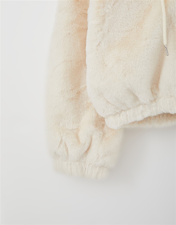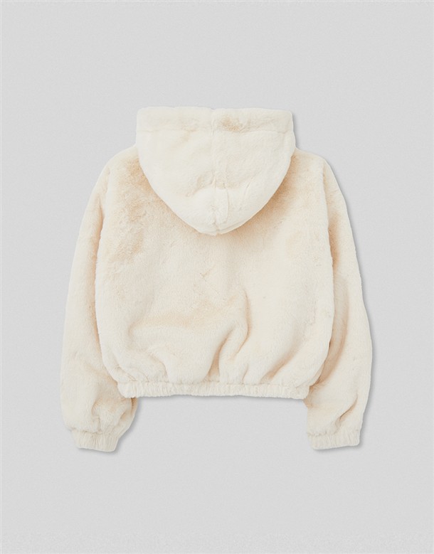 毛絨連帽薄鋪棉外套