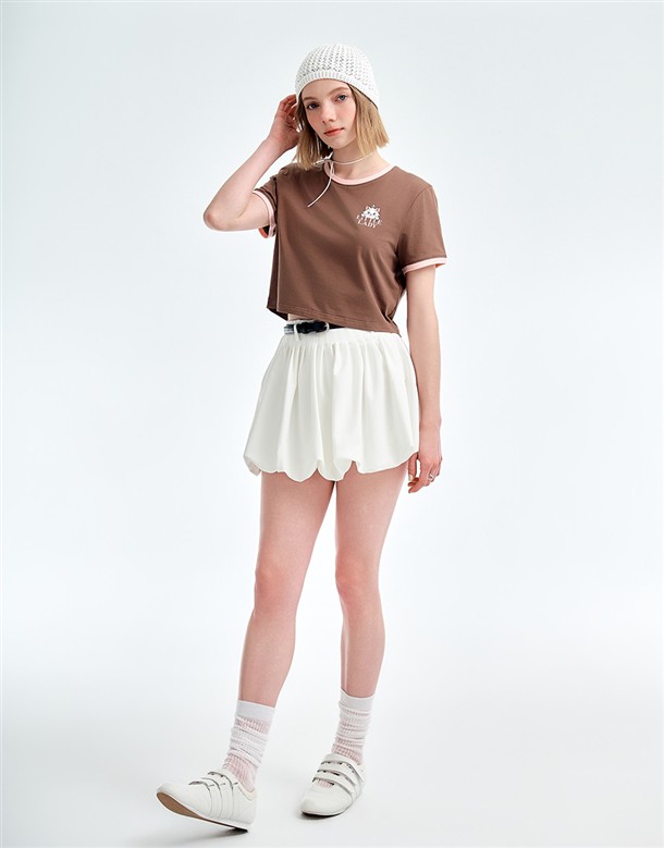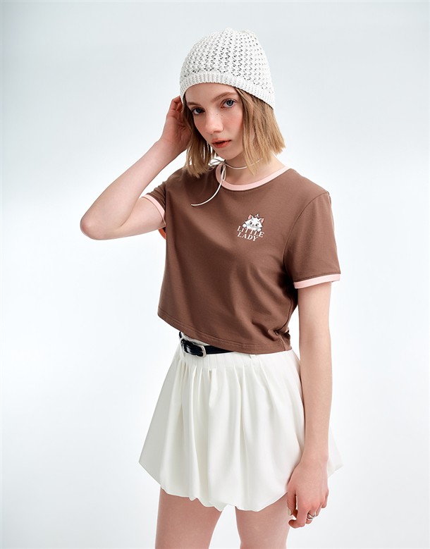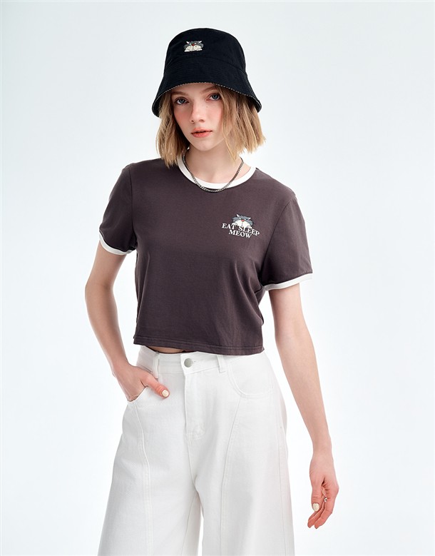 瑪麗貓撞色滾邊涼感短T