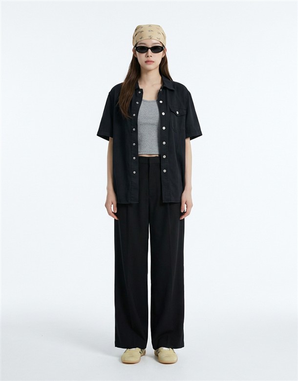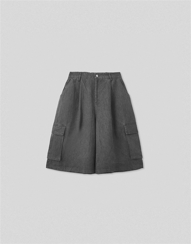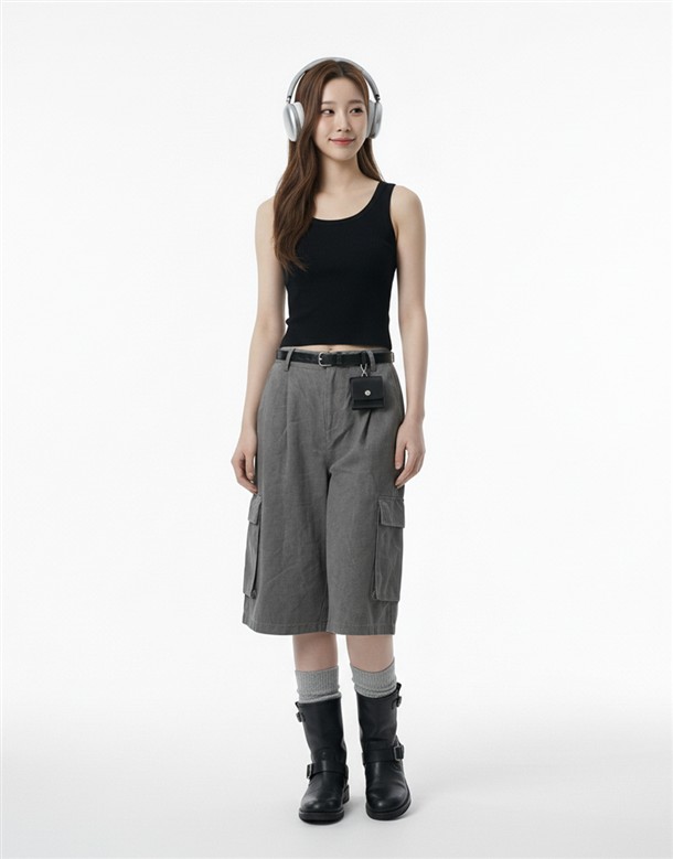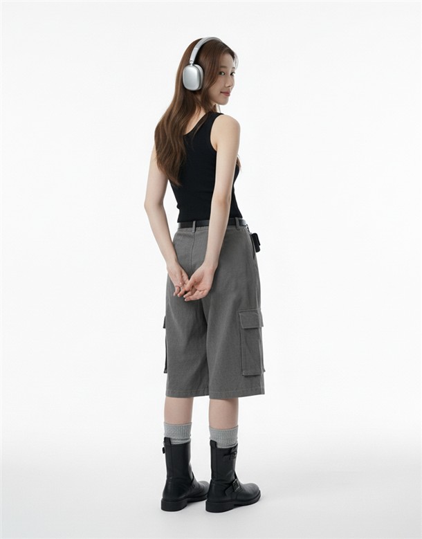 口袋七分休閑寬褲