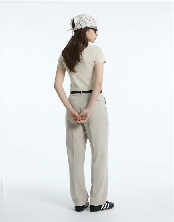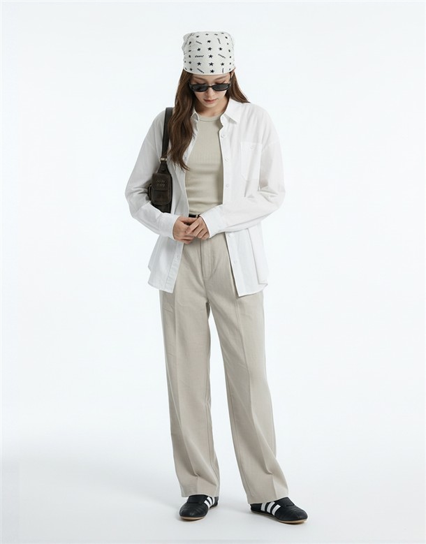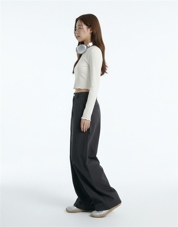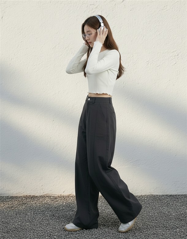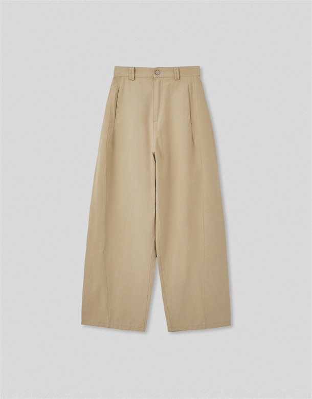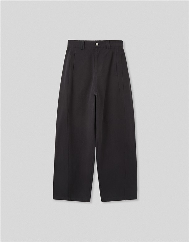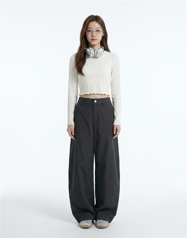 斜切低調繭型休閒褲