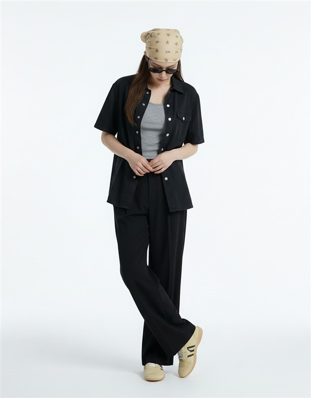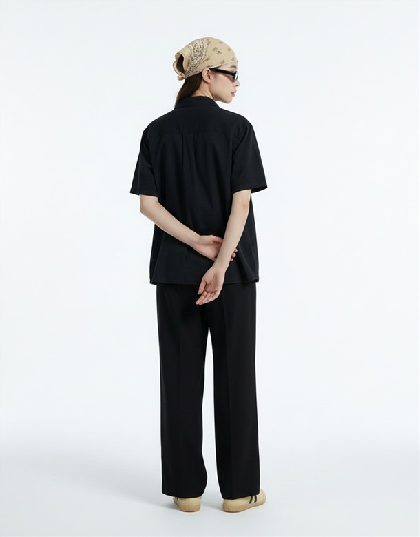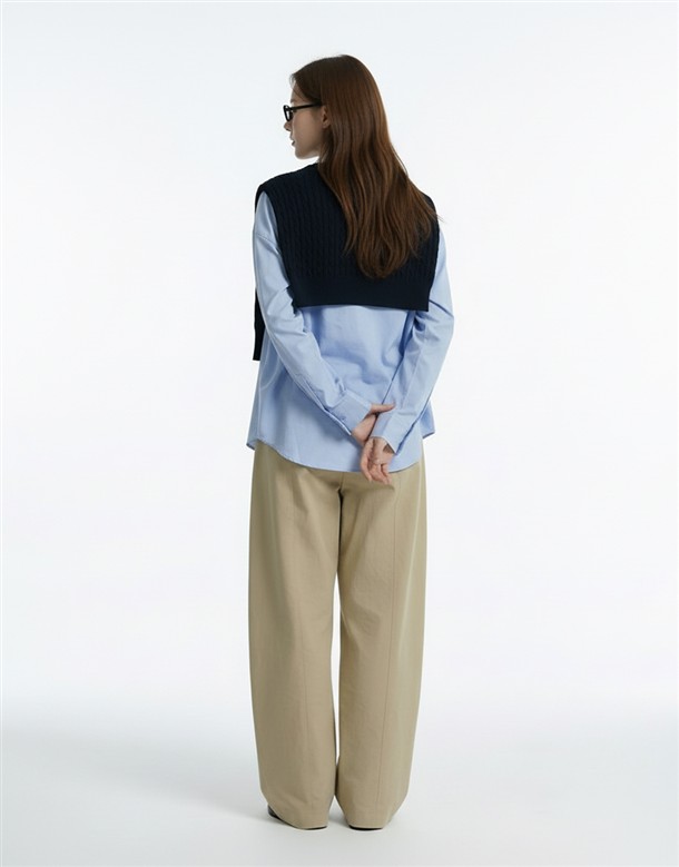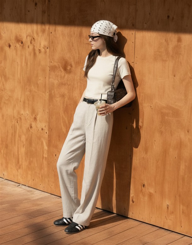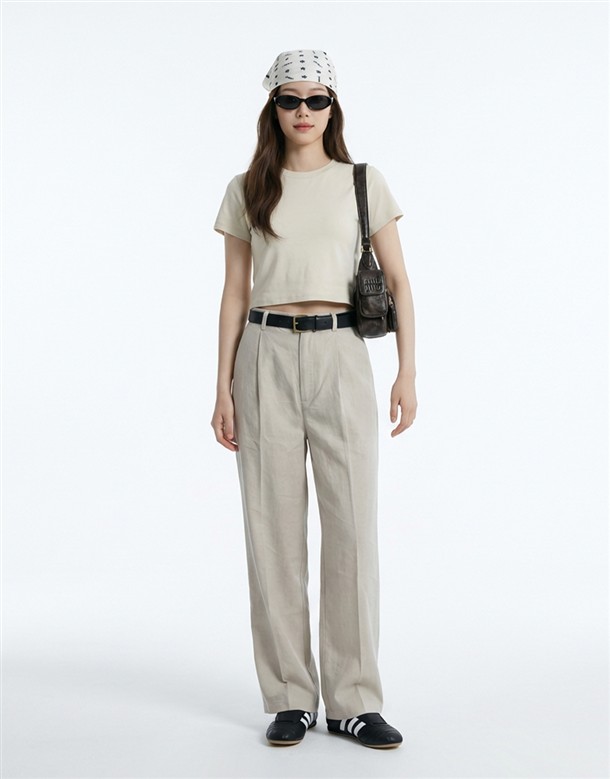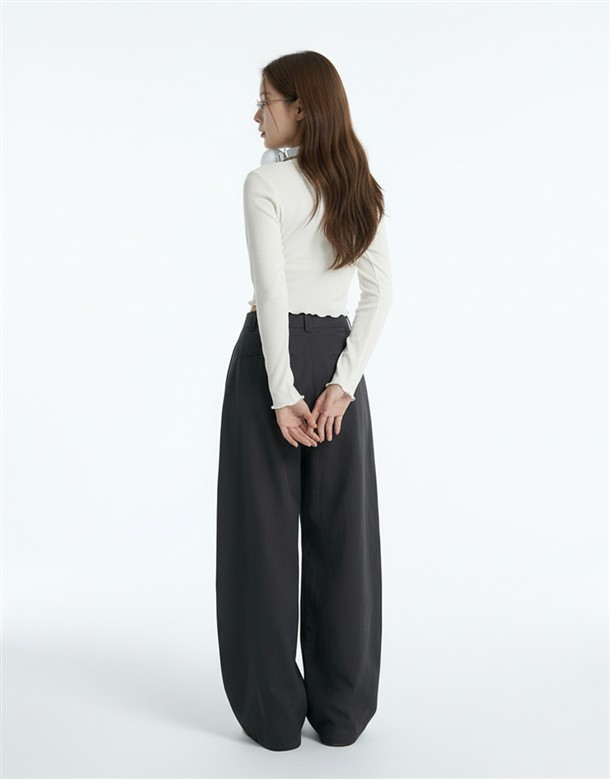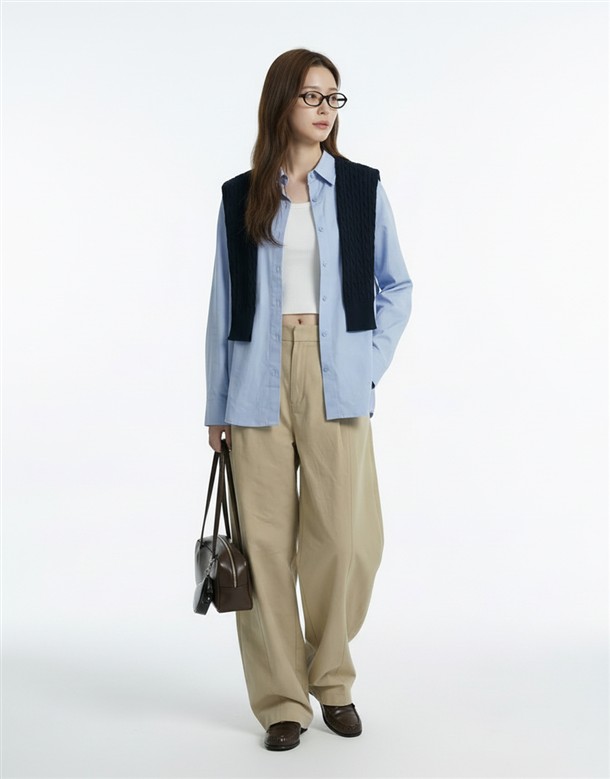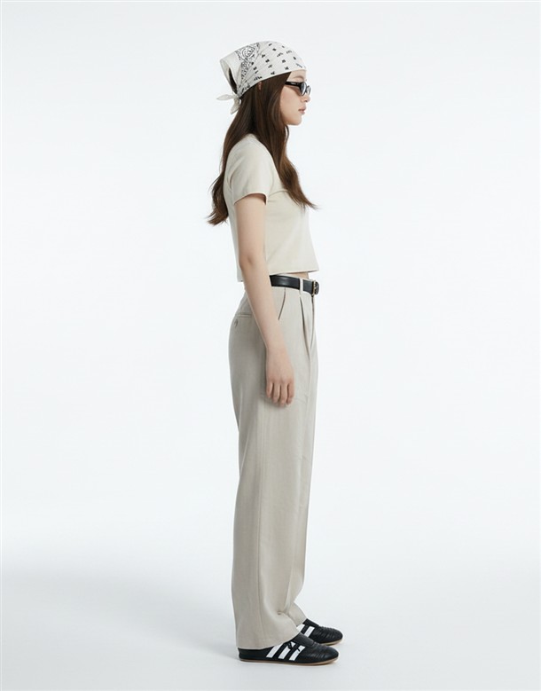 斜切低調繭型休閒褲