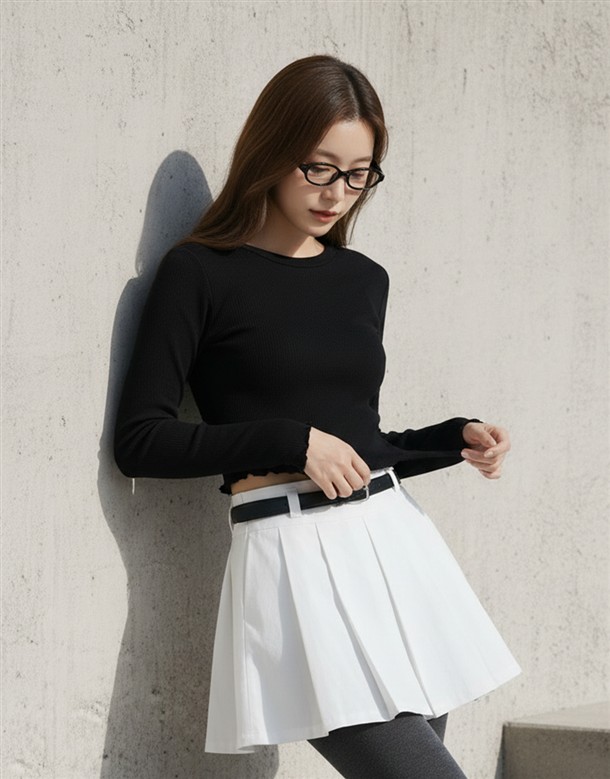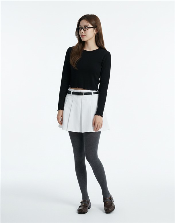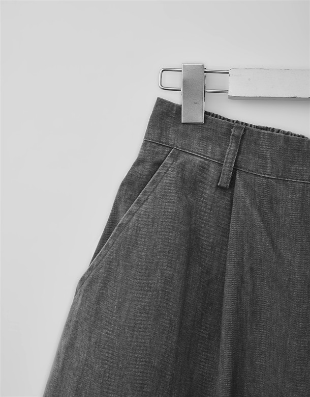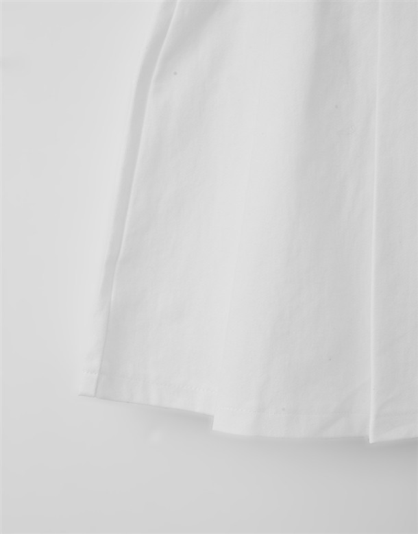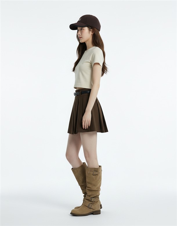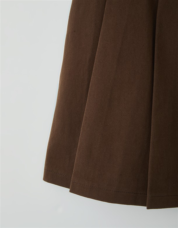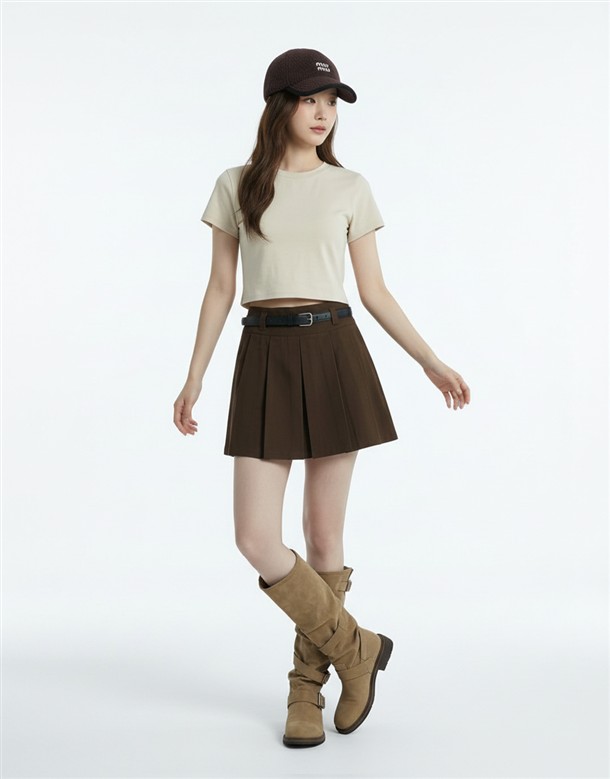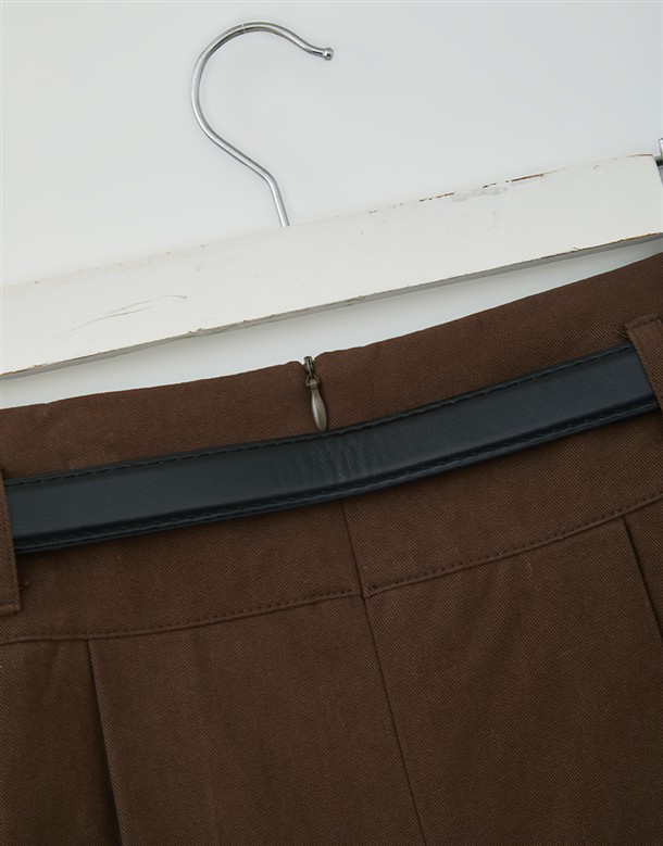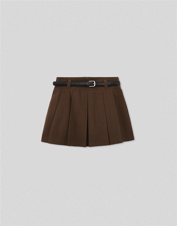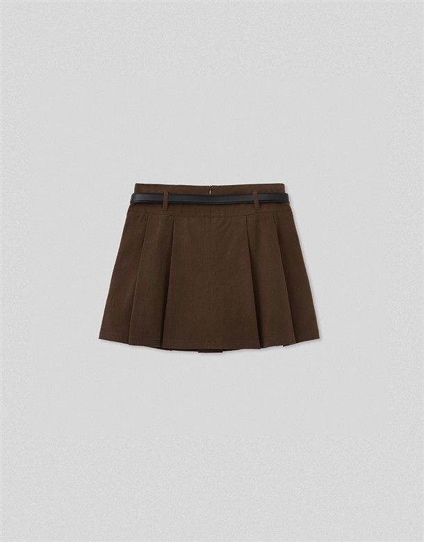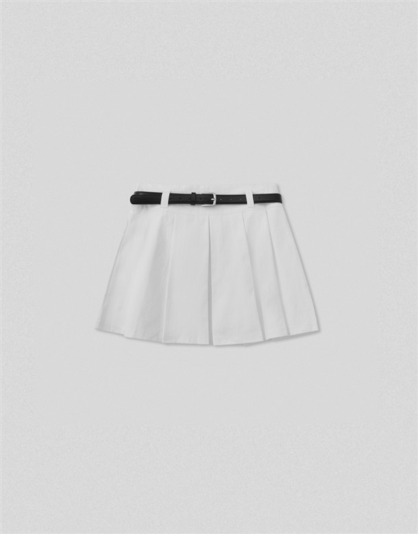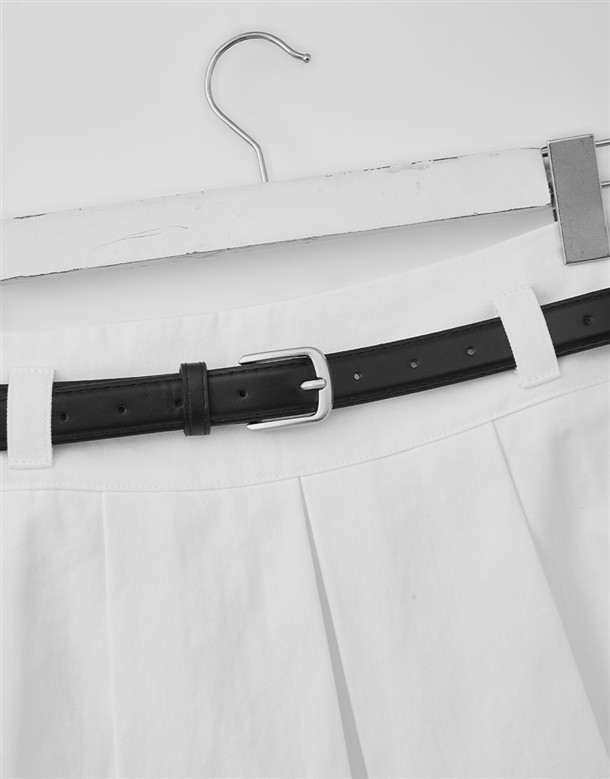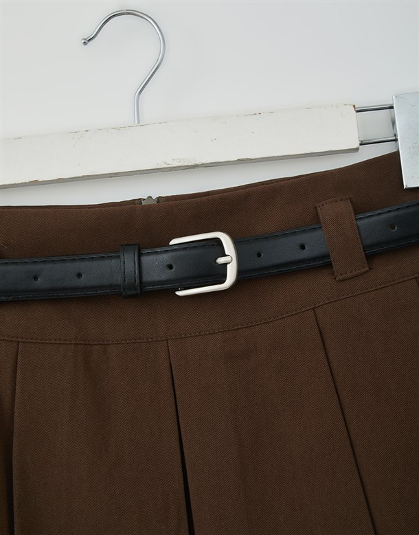 寬百褶斜紋短裙(附皮帶)