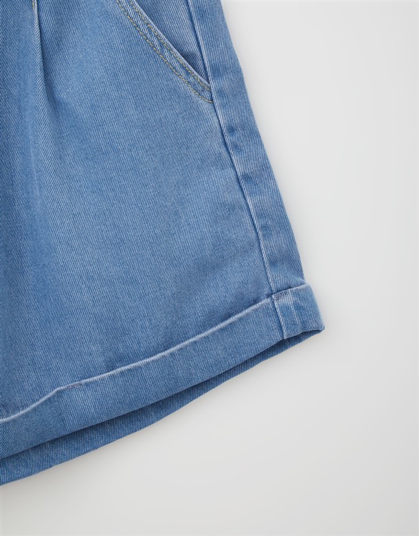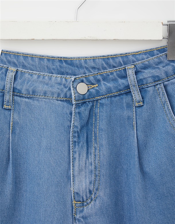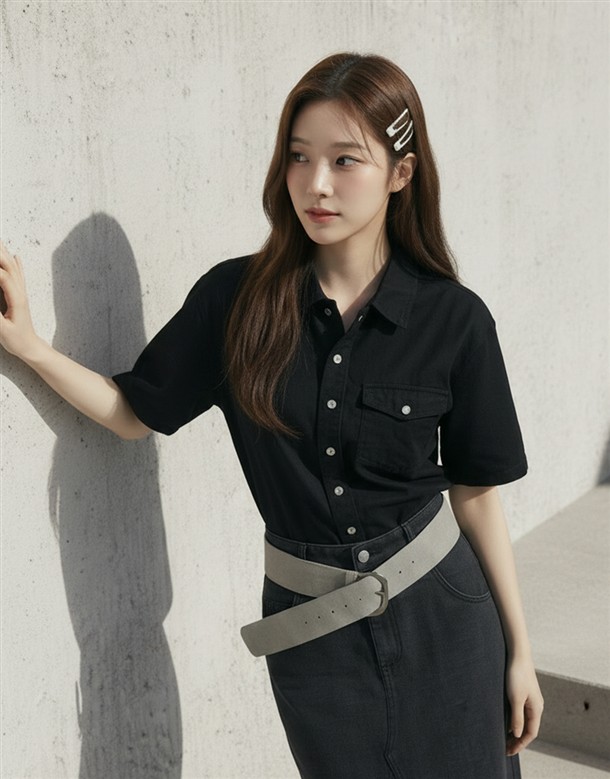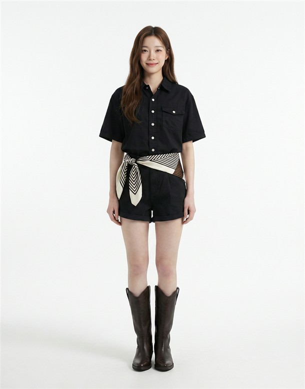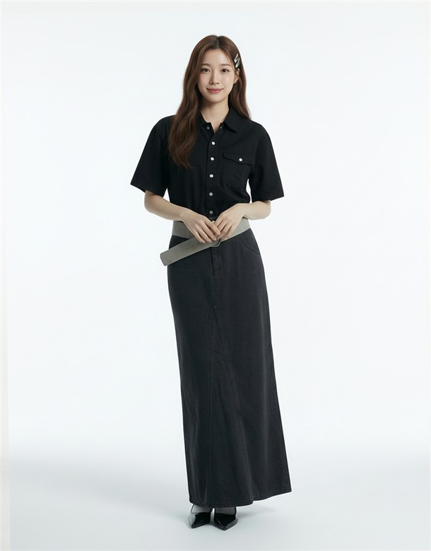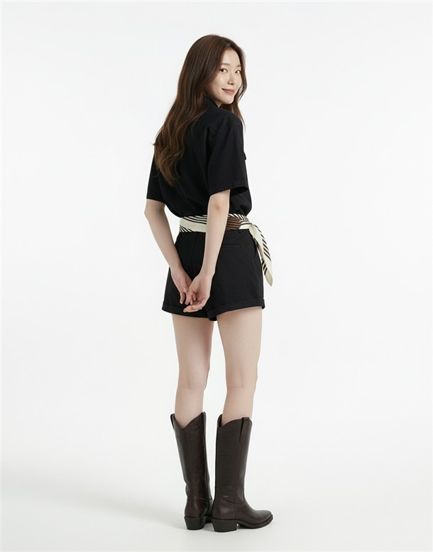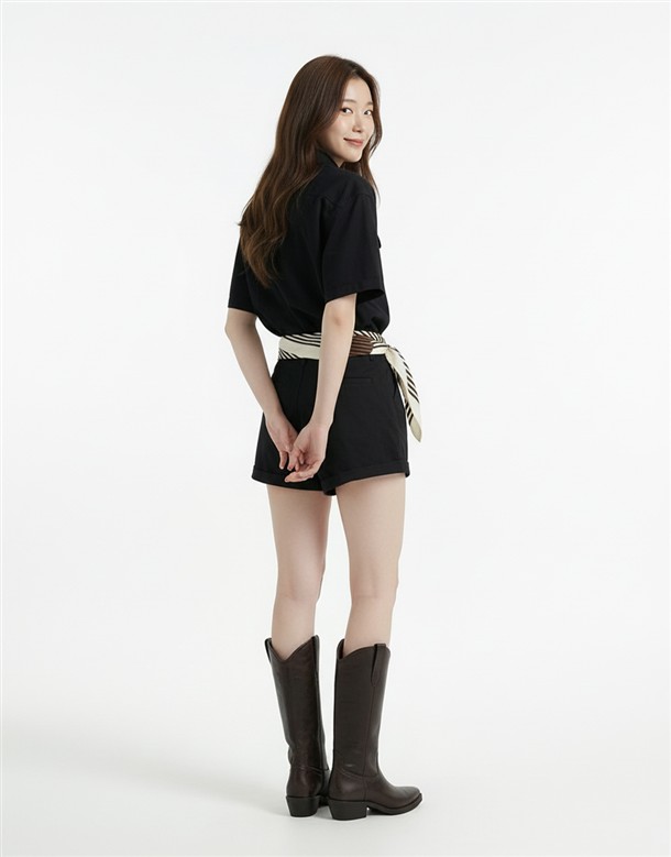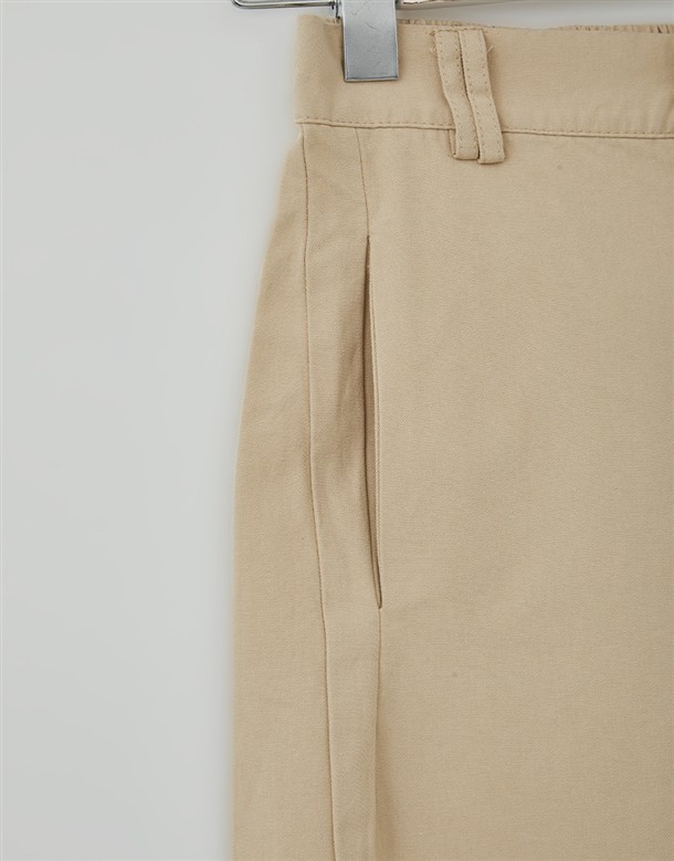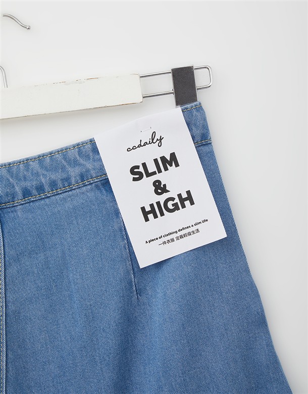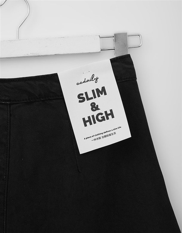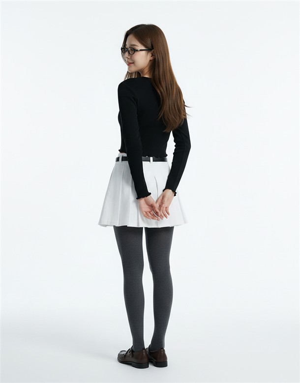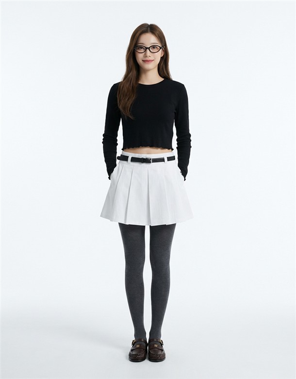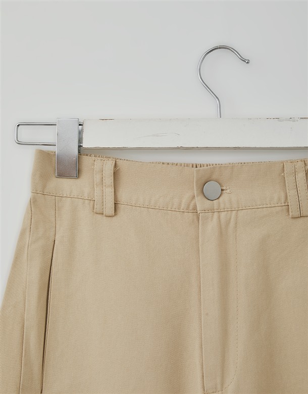 寬百褶斜紋短裙(附皮帶)