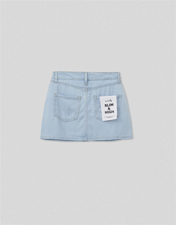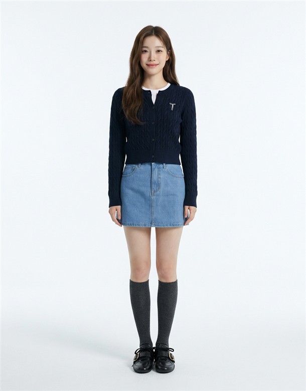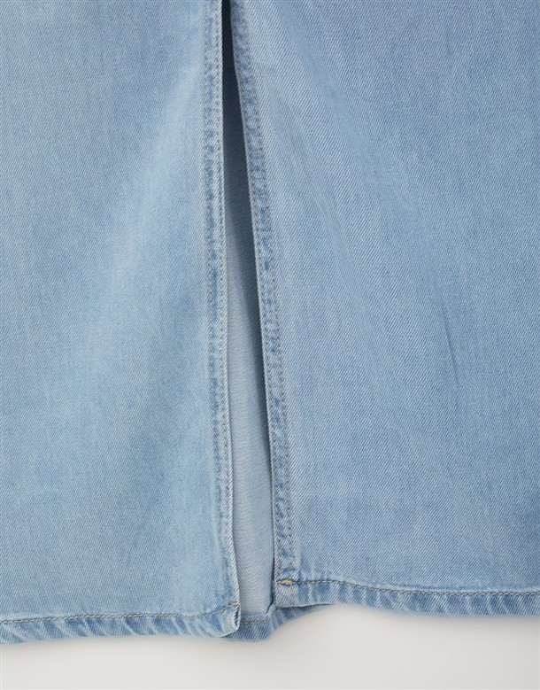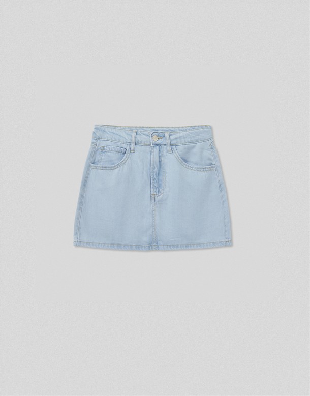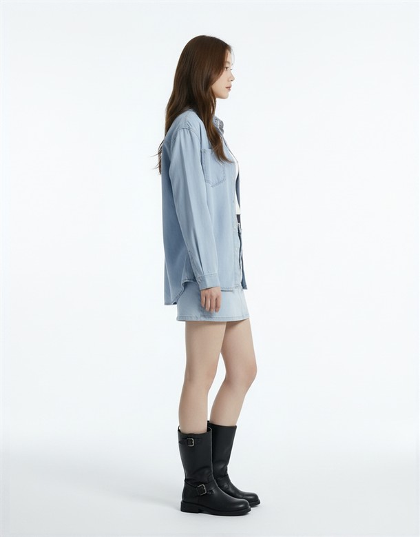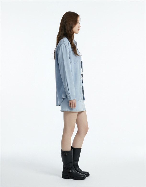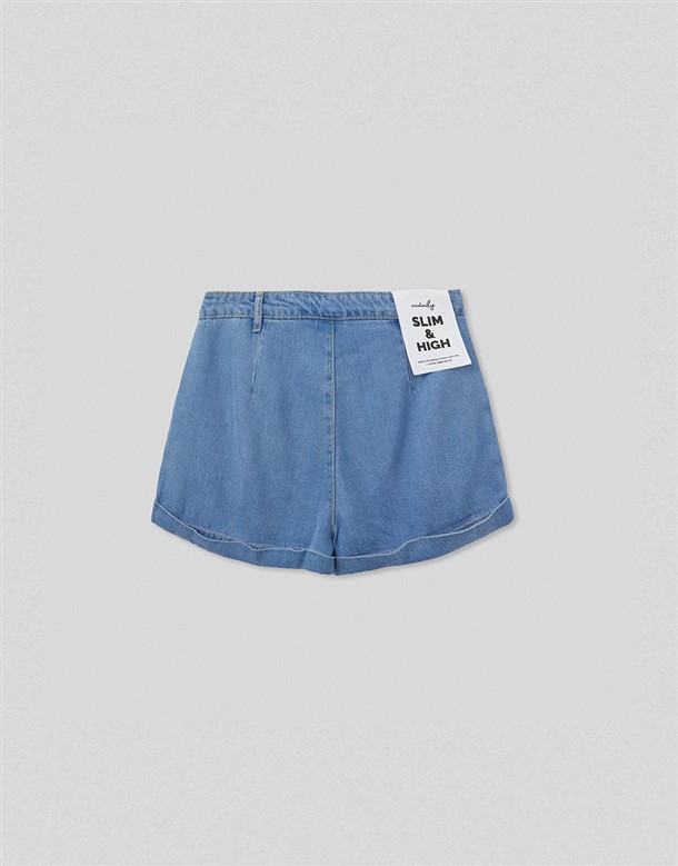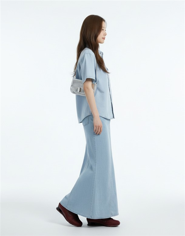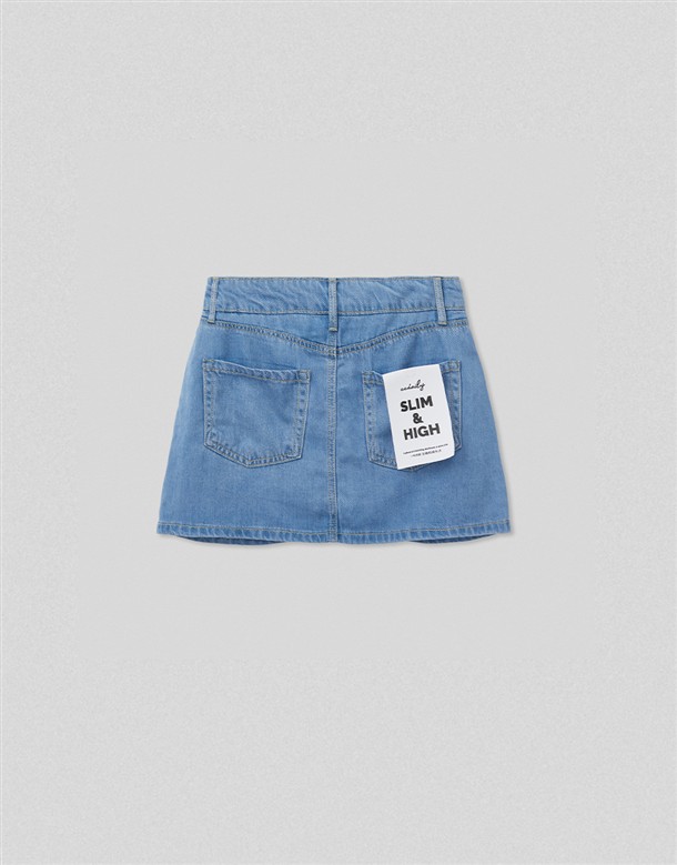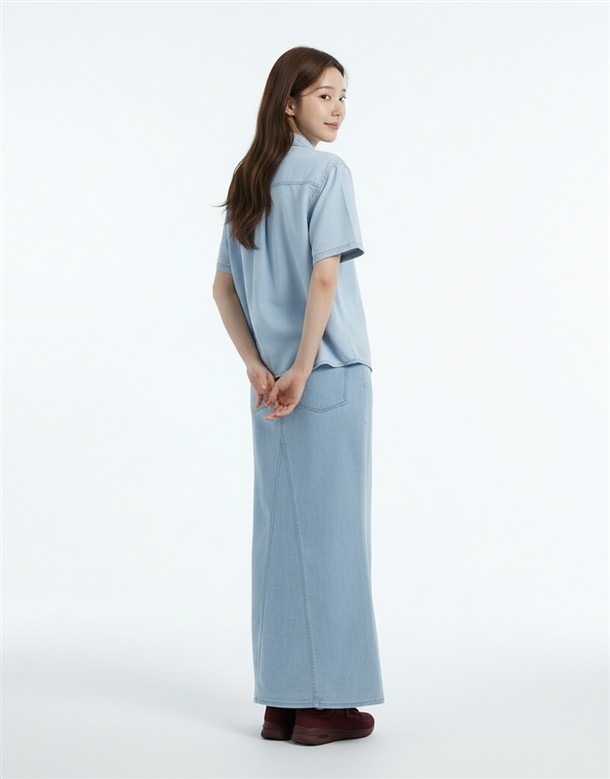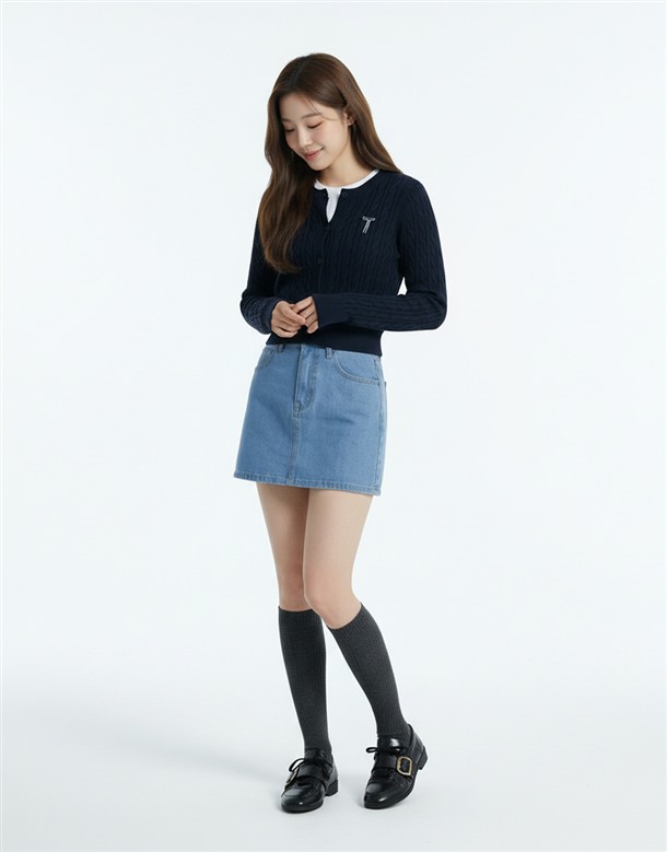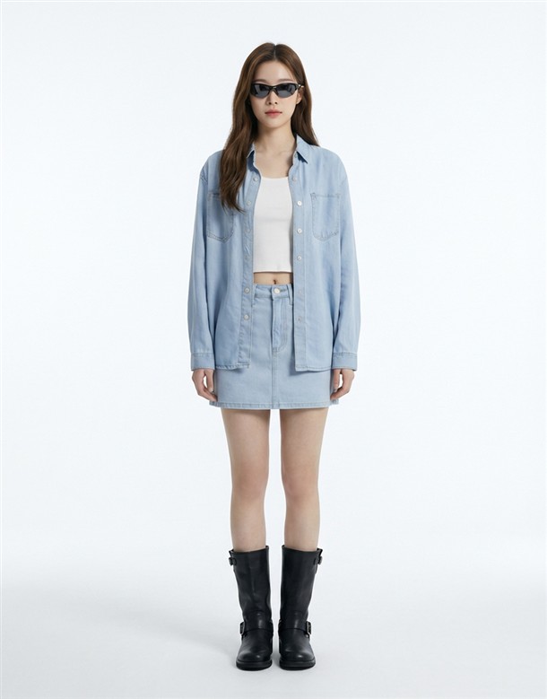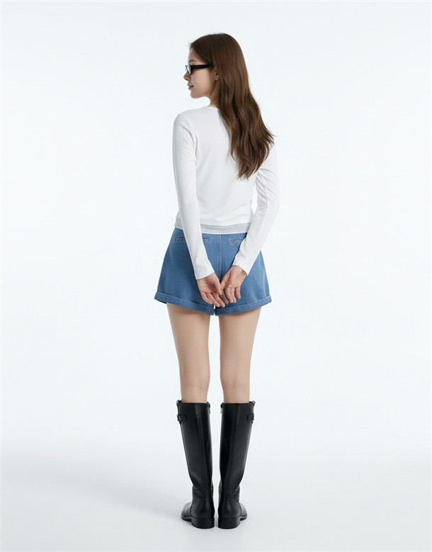 寬百褶斜紋短裙(附皮帶)