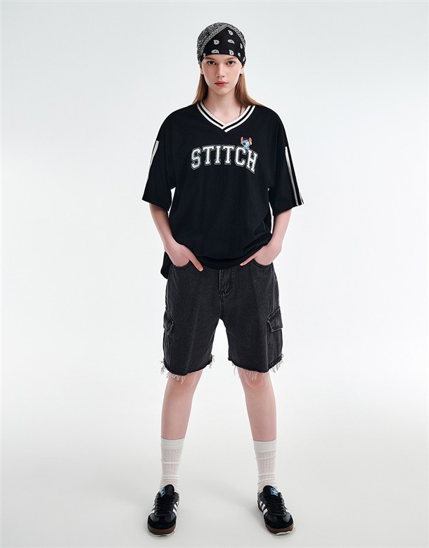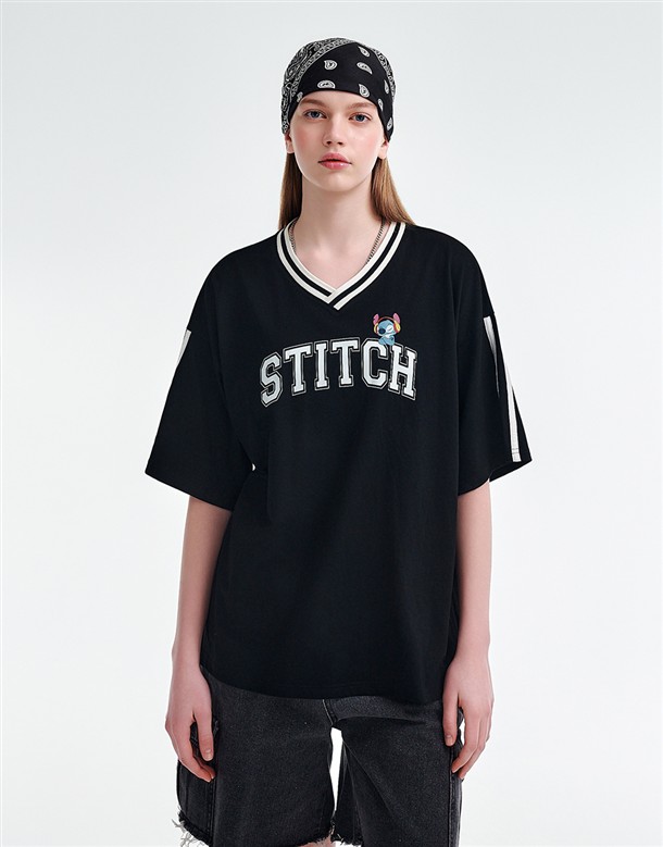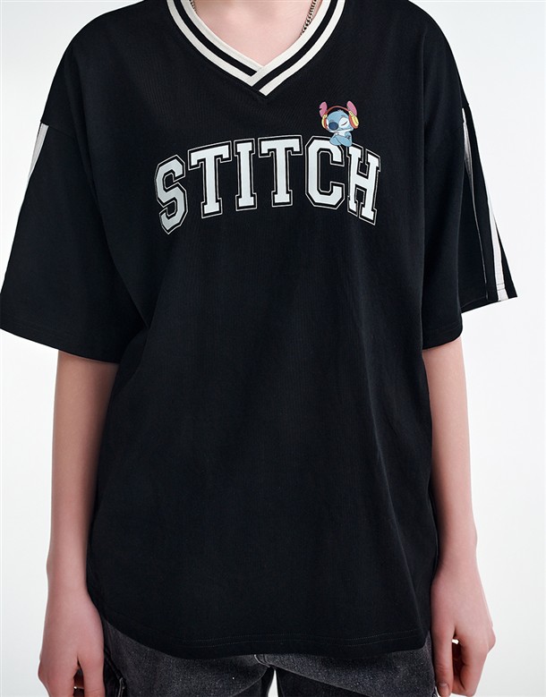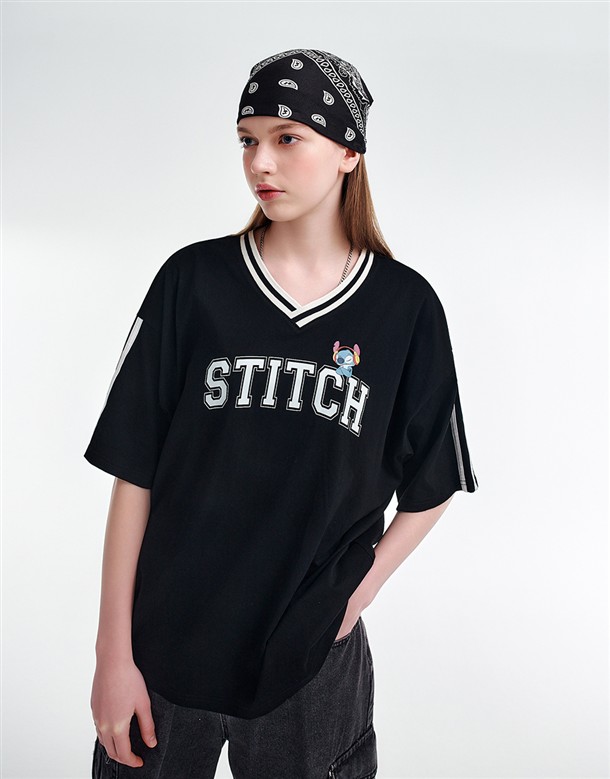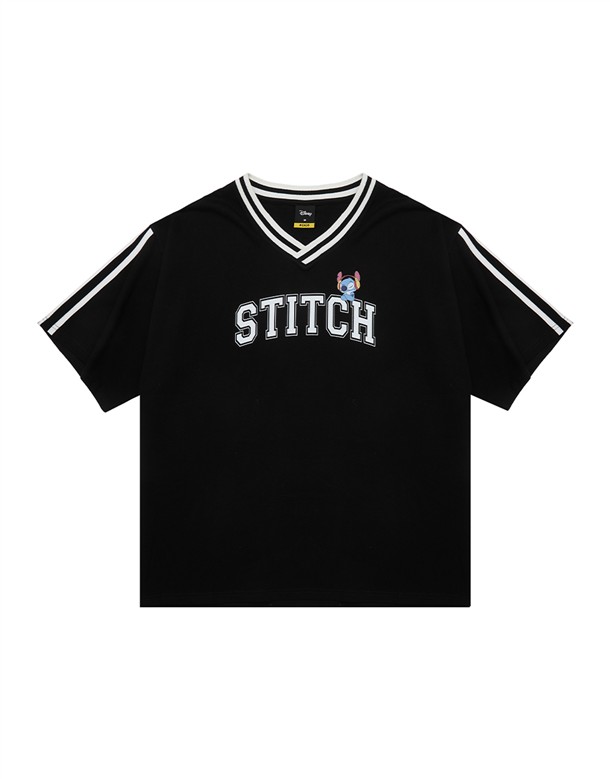 史迪奇V領配條上衣