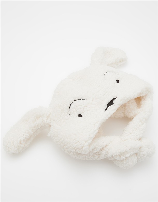 小白立體耳朵絨毛帽子